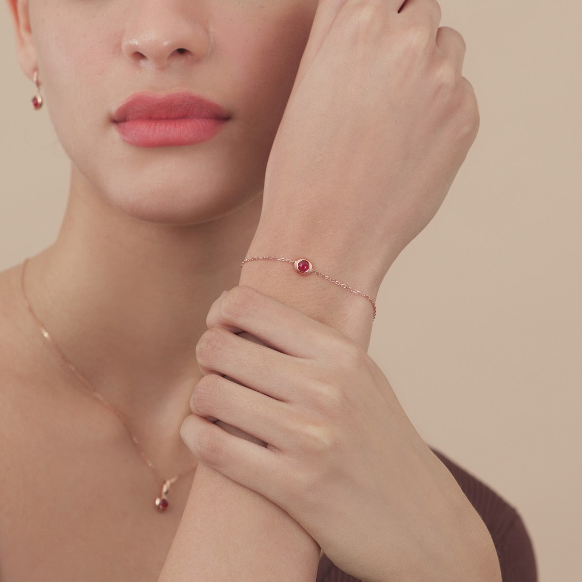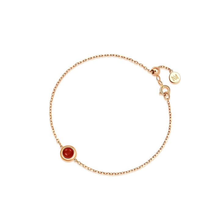 Handcrafted in 18K rose gold, featuring red chalcedony, weighing approximately 0.053 tael (~1.984g), with an 18cm length.