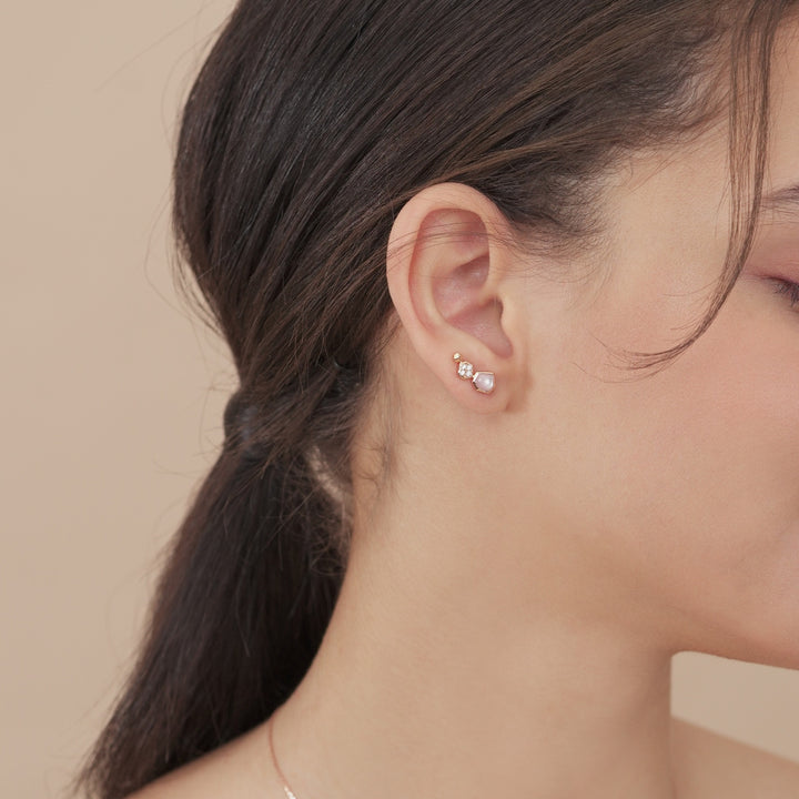 Harmony'18K Red Gold Mother of Pearl Single Right Earring