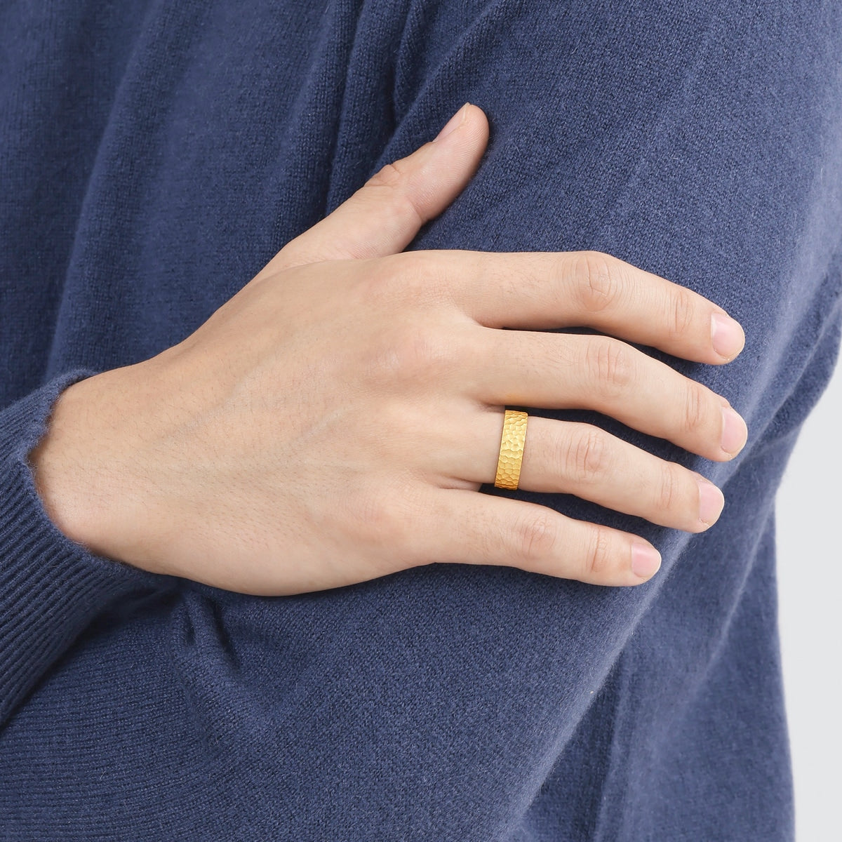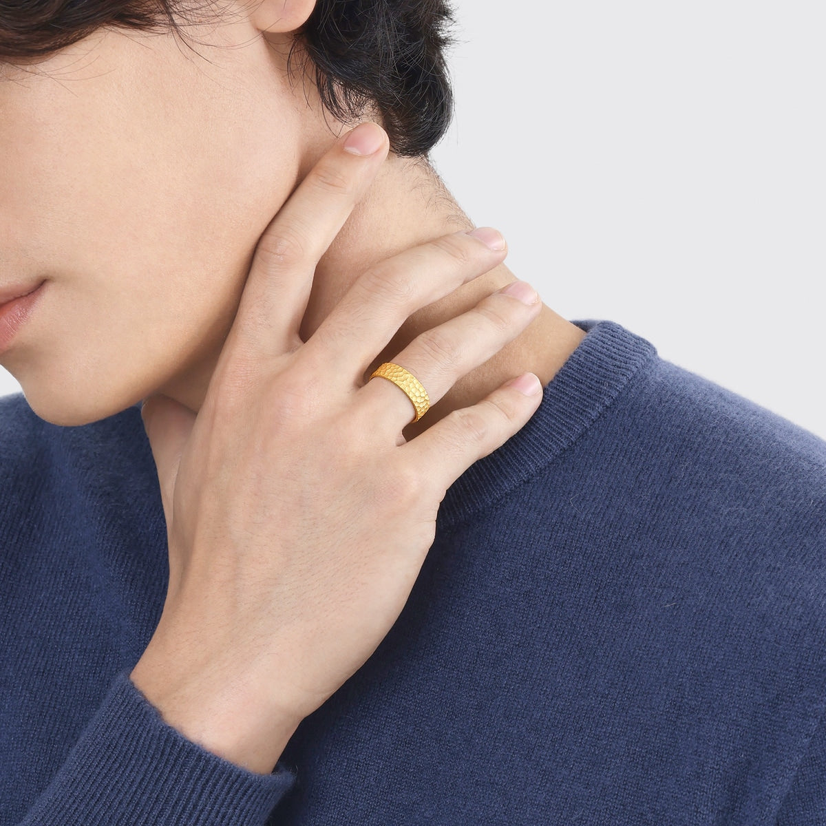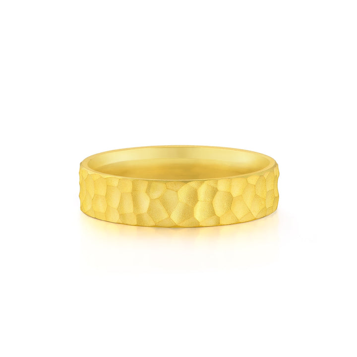 This 999.9 Gold Ring by Chow Sang Sang features a modern hammered texture that adds a stylish and contemporary touch. Designed to complement fashionable daily wear, this gold ring is a versatile piece perfect for any occasion.