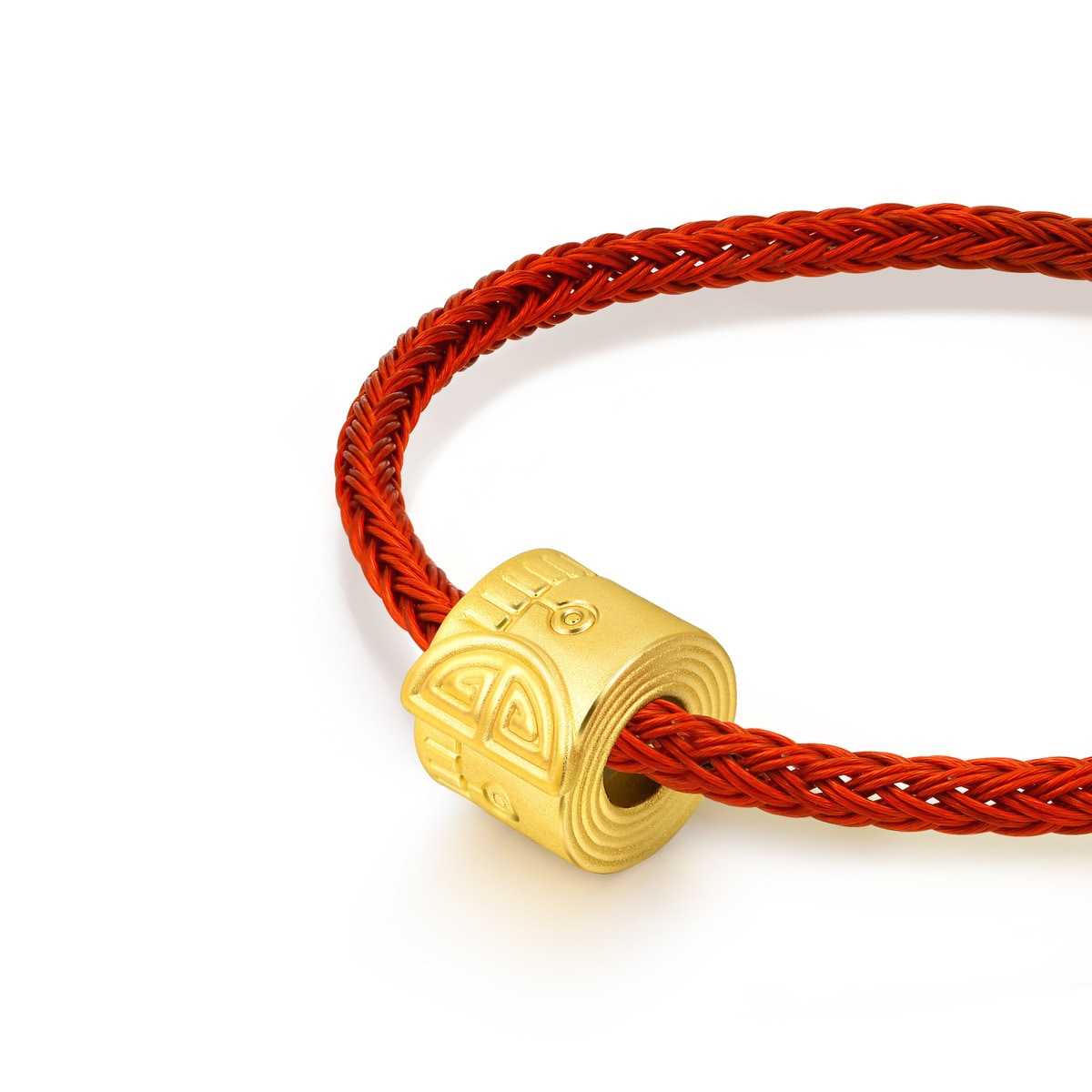 The 'Wonderland 999 Gold Ruler Charm by Chow Sang Sang' is inspired by the Zhuazhou Chinese ritual for children, symbolizing an innovative designer and a perfect gift for newborns from the 'Hello World' collection.