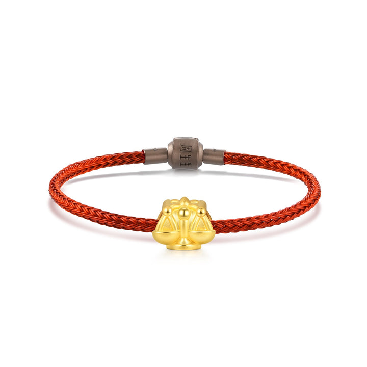 The 'Wonderland 999 Gold Balance Charm by Chow Sang Sang' symbolizes a fair and righteous judge, inspired by the Zhuazhou ritual. Part of the 'Hello World' collection, it’s a charming gift for newborns.