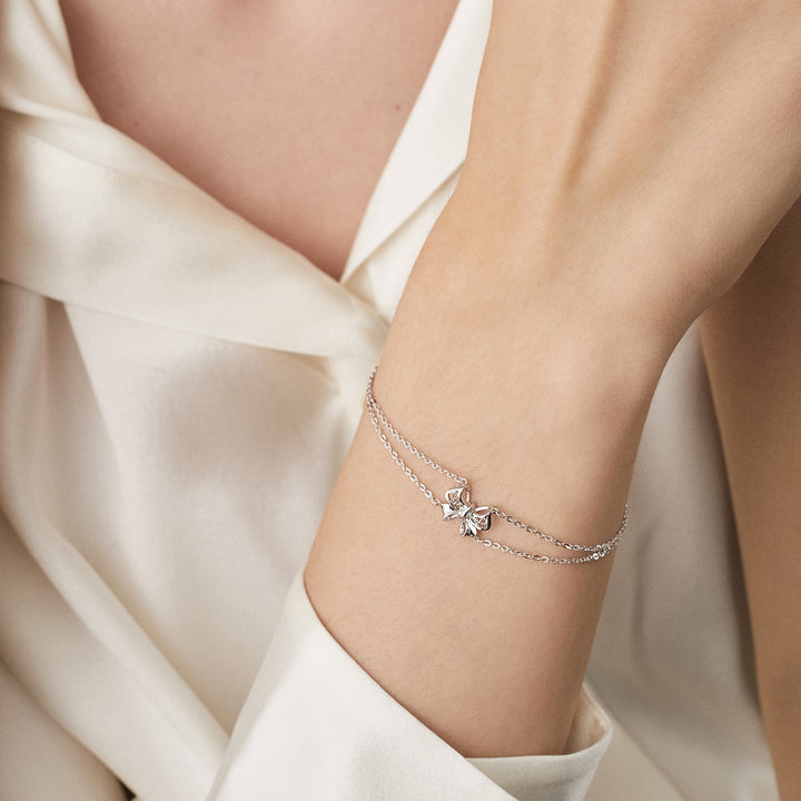 This 950 Platinum Bracelet by Chow Sang Sang features a bowtie-inspired hollow design, adding a layered elegance to your look. Perfect for stacking, this bracelet embodies modern sophistication.