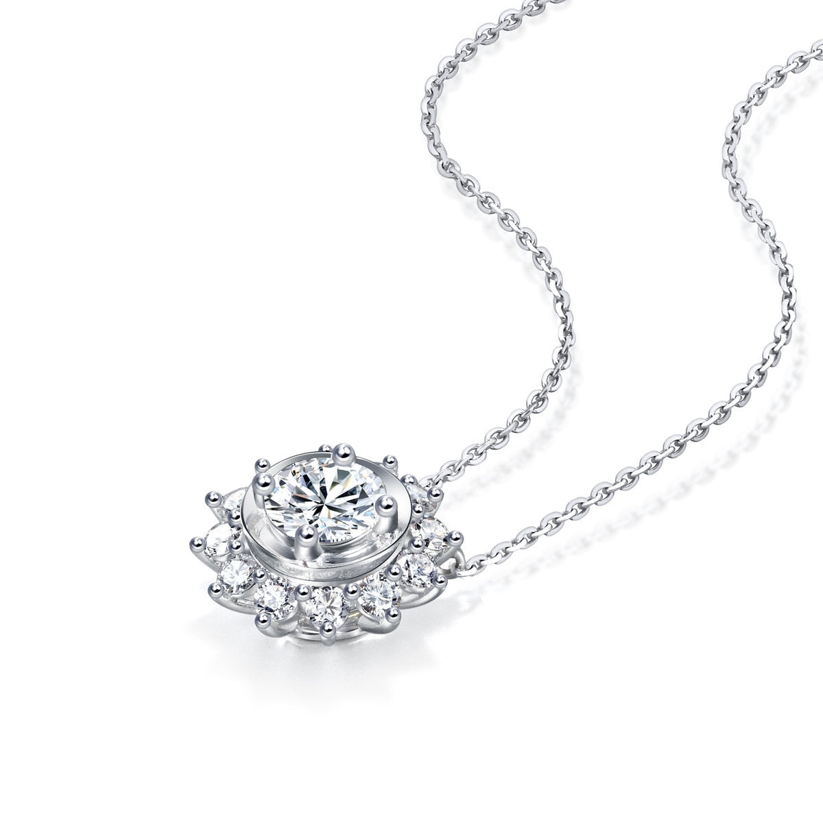 This Starry 18K White Gold Diamond Necklace by Chow Sang Sang features a star-inspired design, with brilliant diamonds that evoke the shimmering beauty of the cosmos. A piece that represents elegance and romance.