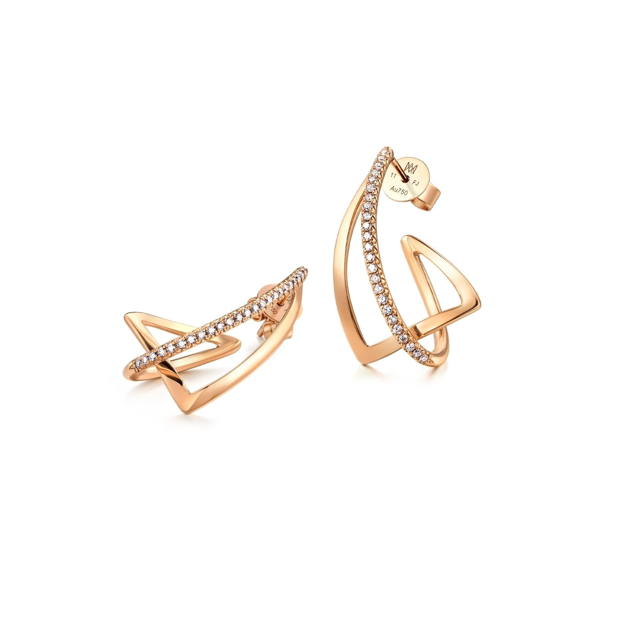 These Form 18K Rose Gold Diamond Earrings by Chow Sang Sang are distinct with their star shape, exhibiting beauty from different angles and perspectives.