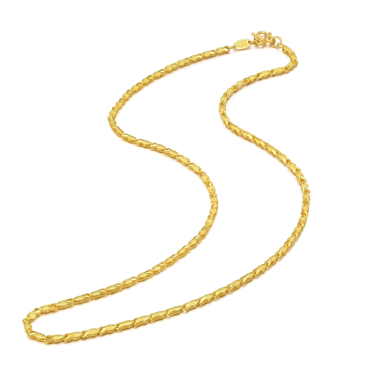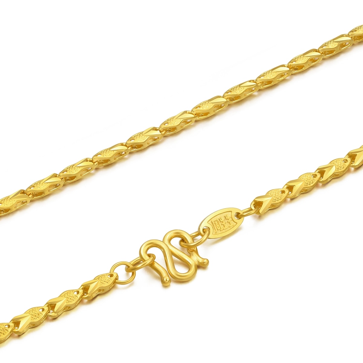 This 999.9 Gold Necklace by Chow Sang Sang features a lively and intricate fish chain, symbolizing good fortune and modern elegance.