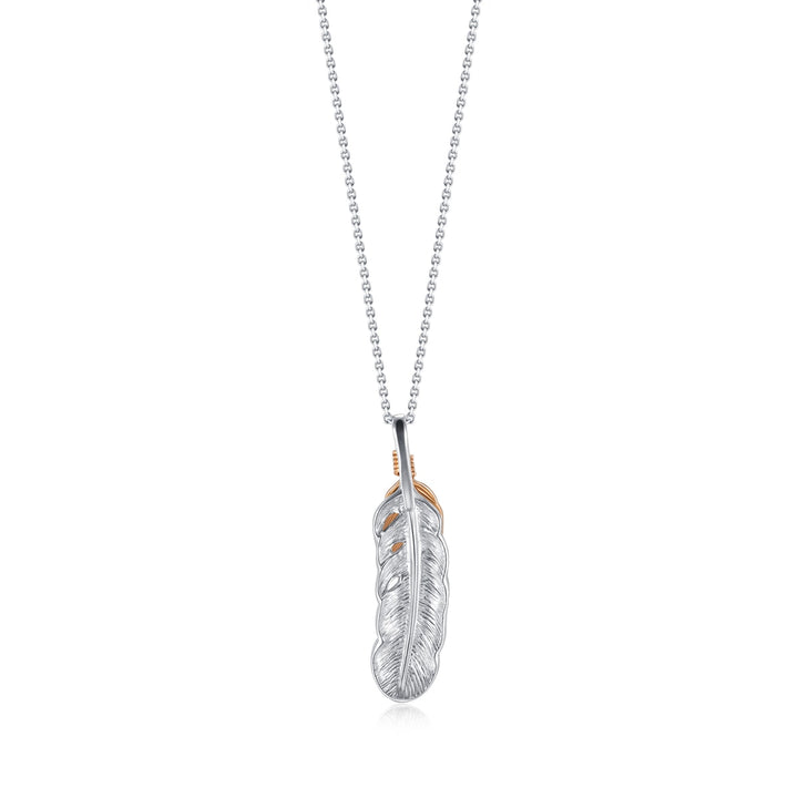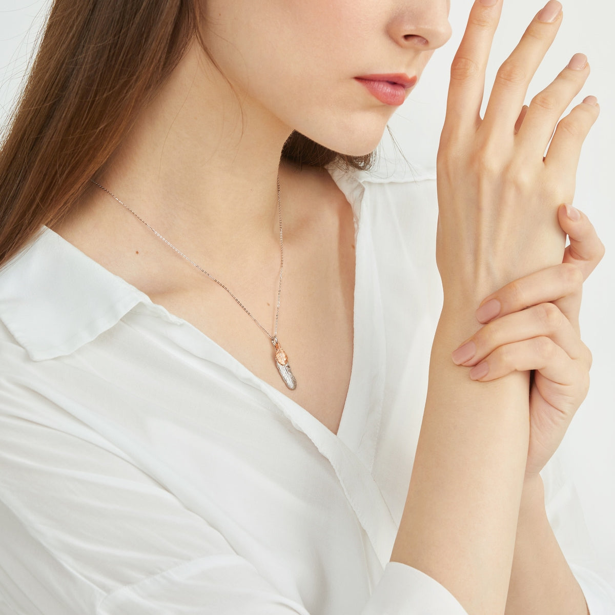 This 18K White & Red Gold Feather Pendant by Chow Sang Sang signifies love and protection, inspired by Cupid’s feather, and showcases a beautiful multi-tone design.
