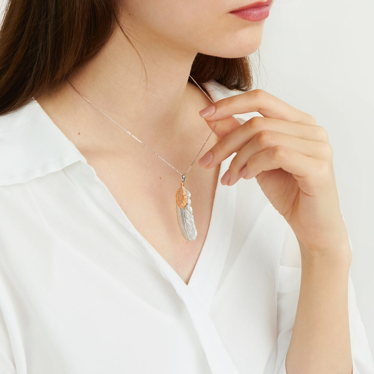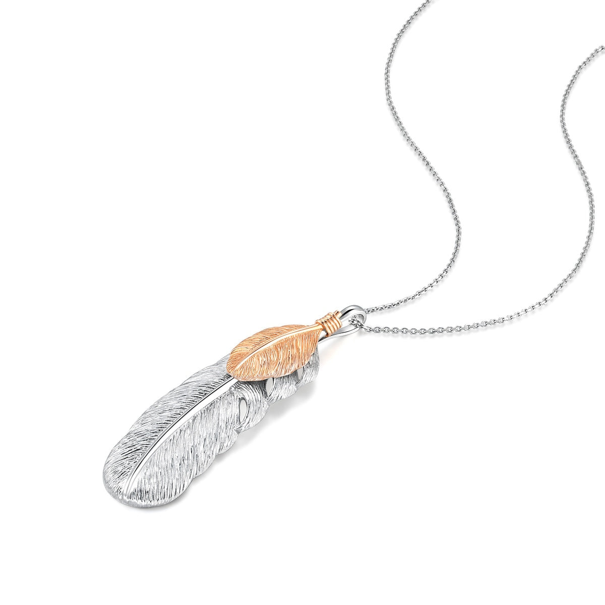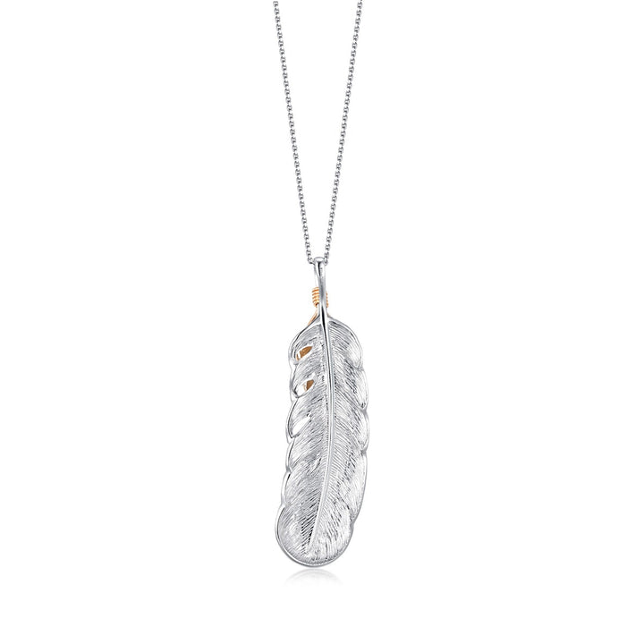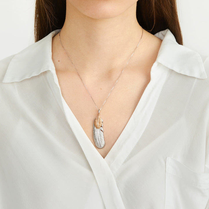 18K White & Red Gold Feather Pendant