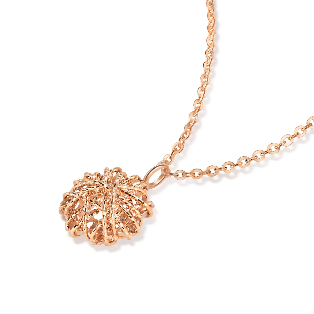 This 18K Rose Gold Necklace by Chow Sang Sang features a beautifully brushed design, knitted into a three-dimensional snowflake shape, making each piece unique.