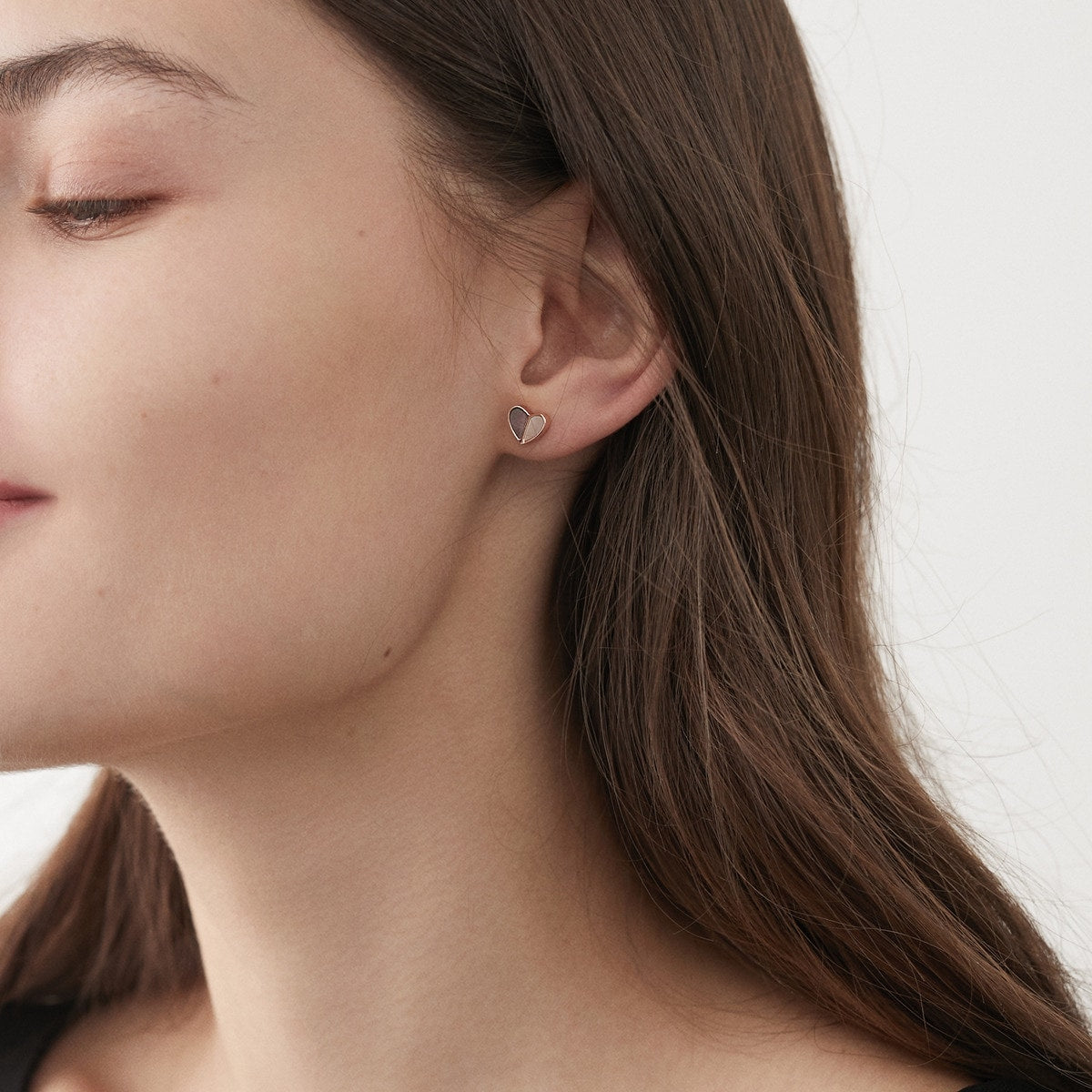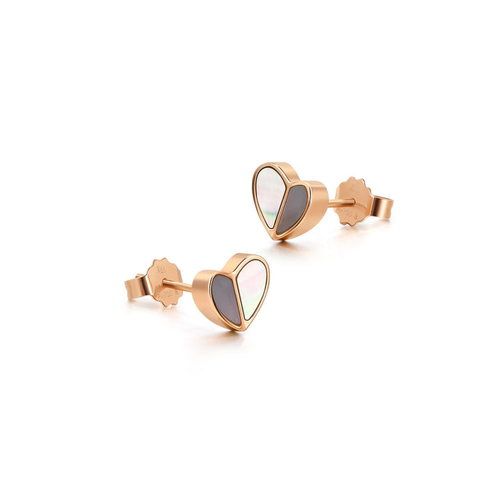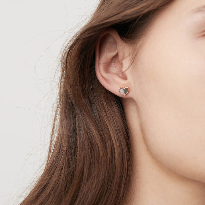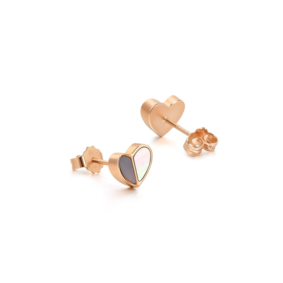 These 18K Rose Gold Heart Earrings by Chow Sang Sang feature a similar design to the bracelet, with black-and-white mother of pearl embellishments adding a unique flair.