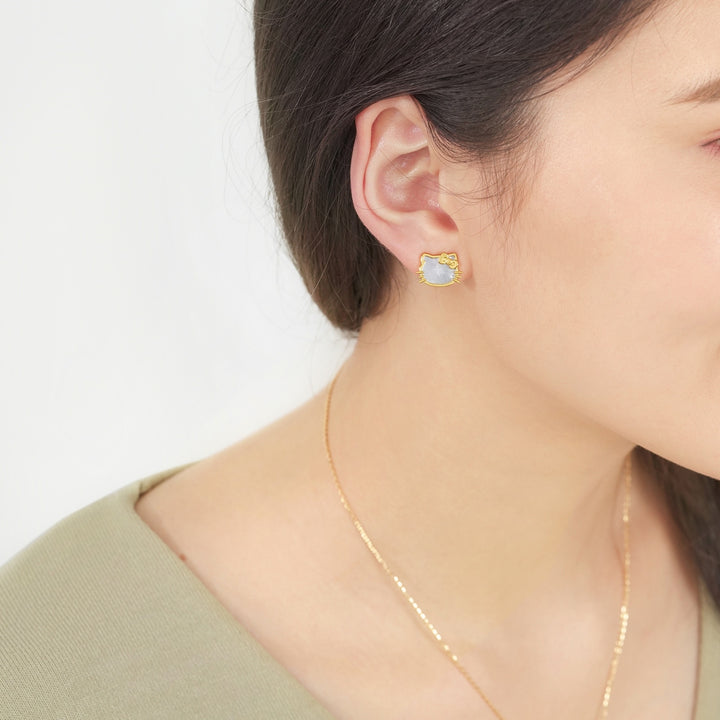 This Hello Kitty 999.9 Gold Single Earring by Chow Sang Sang features the beloved character, adorned with a hand-polished mother of pearl embedded in the gold frame. The combination of gold and mother of pearl creates a natural, radiant iridescence. Cute and sweet, the intricate design is enhanced by sand blasting, making it a delightful accessory for fans of all ages.
