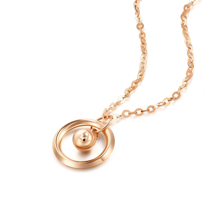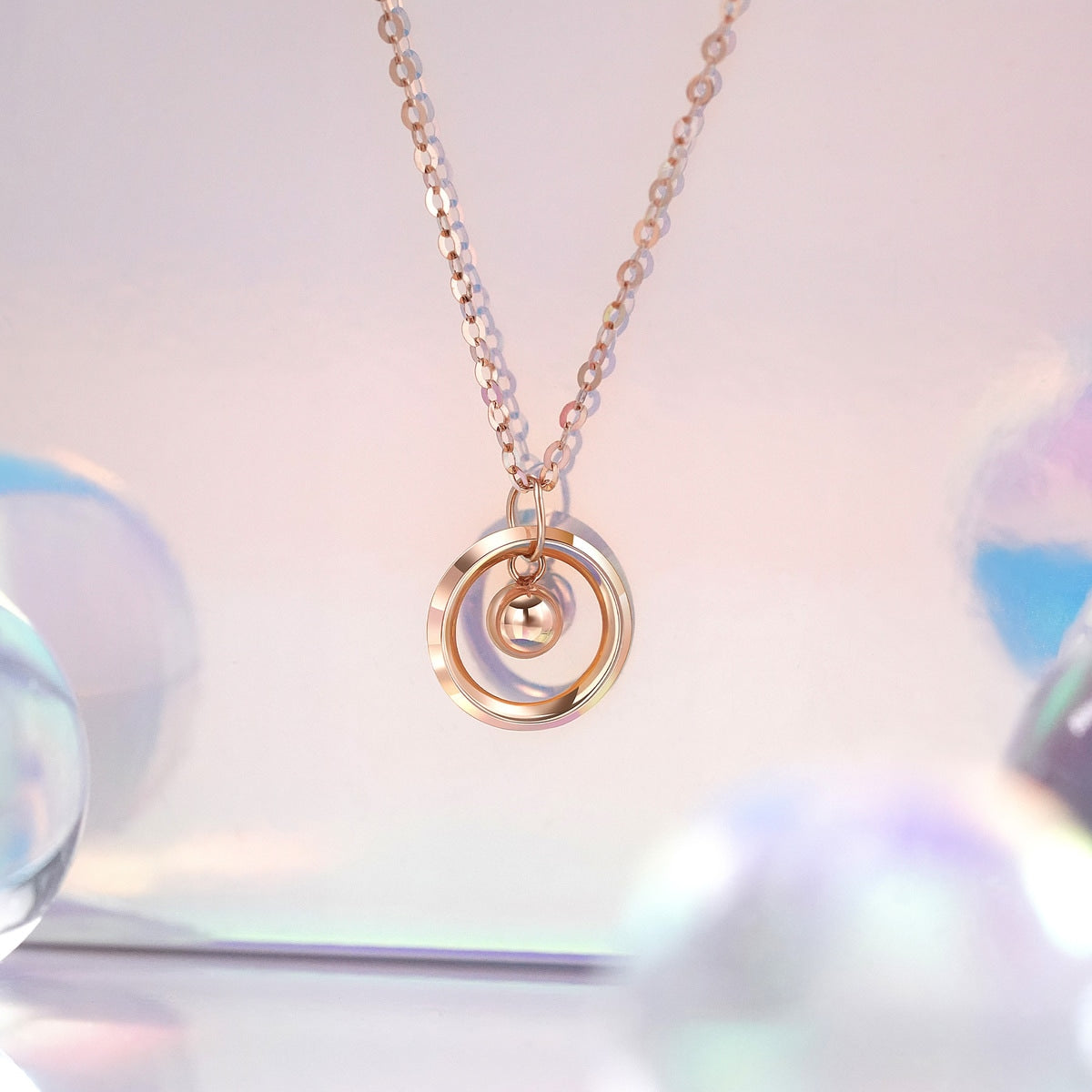 This 18K Rose Gold Necklace by Chow Sang Sang features a mini bead gracefully hanging within a circular frame. The ultra-fine frame is crafted with exceptional precision, resulting in a smoother and shinier surface than traditional handcrafting, polished using CNC techniques.