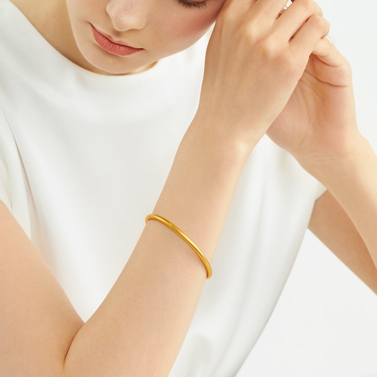 This 'The Oriental' 999.9 Gold Bangle by Chow Sang Sang is forged in precious ancient gold, featuring a brushed texture that creates a delicate matte surface, magnifying its sense of power. Engraved with exclusive “bamboo” and “bat” motifs, it symbolizes the auspicious wish for abundant blessings.