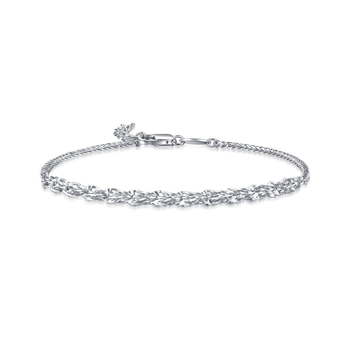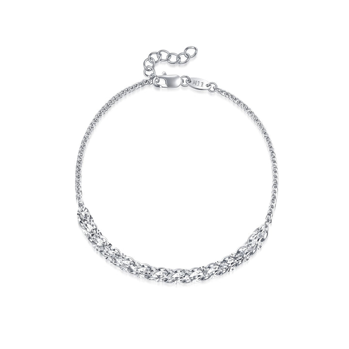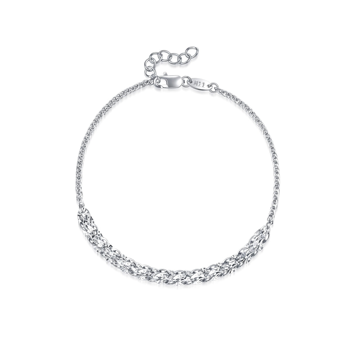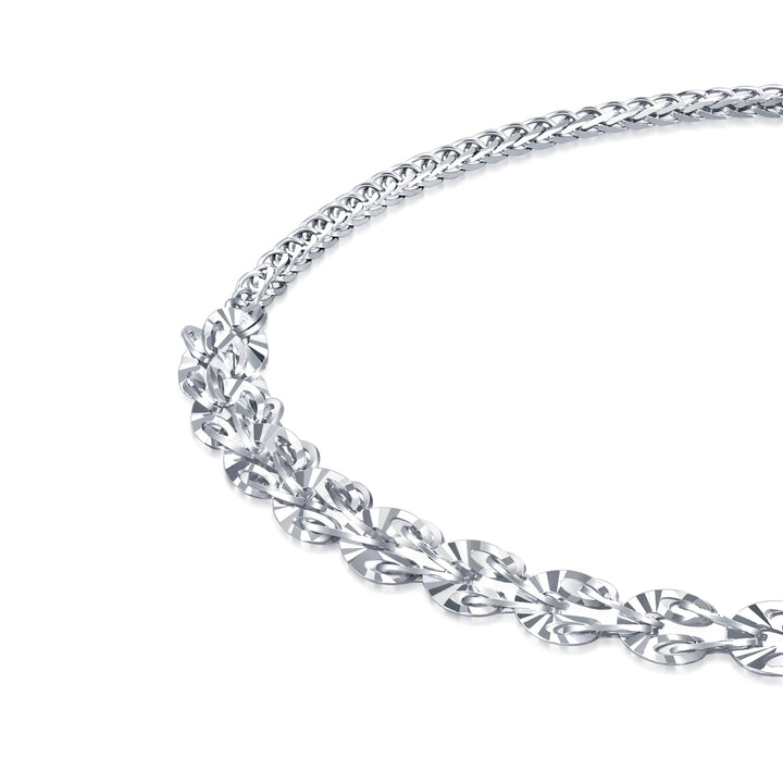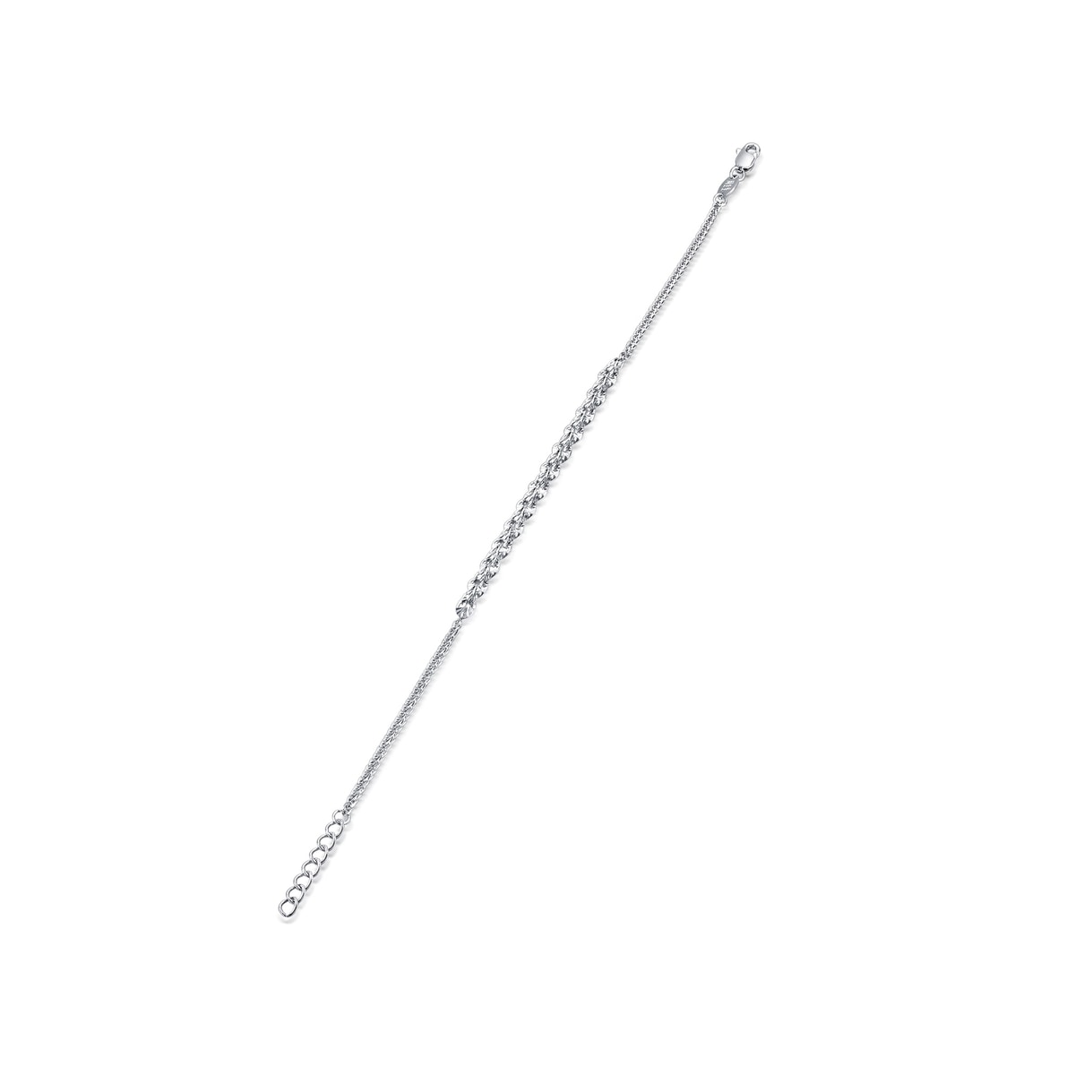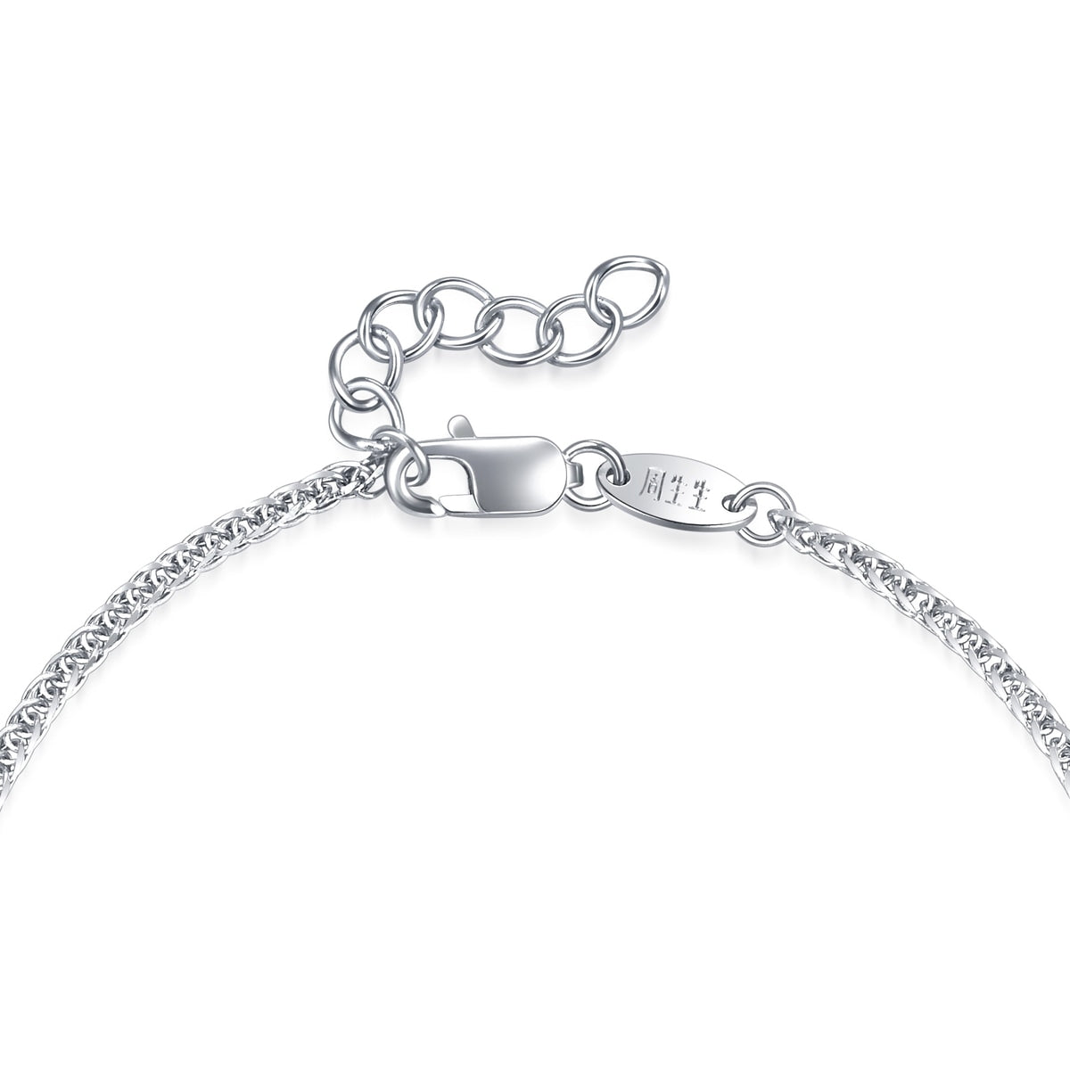 This 950 Platinum Bracelet by Chow Sang Sang showcases a hybrid design of foxtail chains on the sides and three-dimensional round shapes in the middle. The combination provides a stylish and sparkling look with delicate layering, ideal for elevating your outfit.