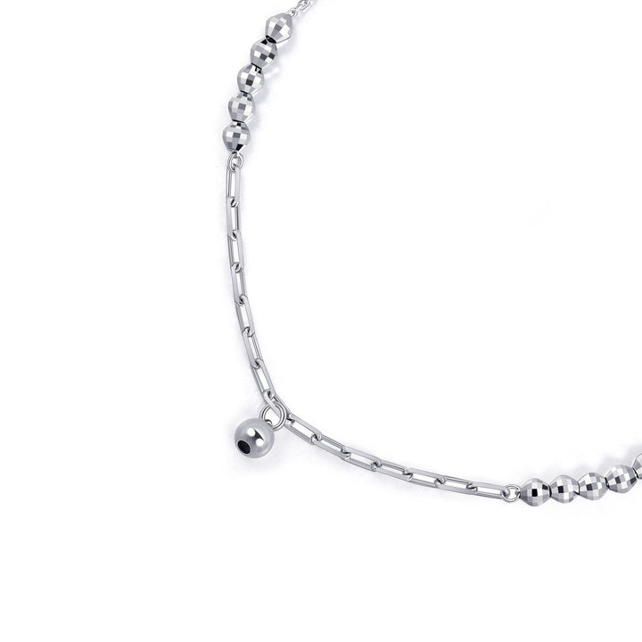 This 950 Platinum Bracelet by Chow Sang Sang is distinguished by alternating long cable chains and ball chains. Its engraved ball embellishment with fine curves enhances the layering effect, perfect for adding sophistication to any look.