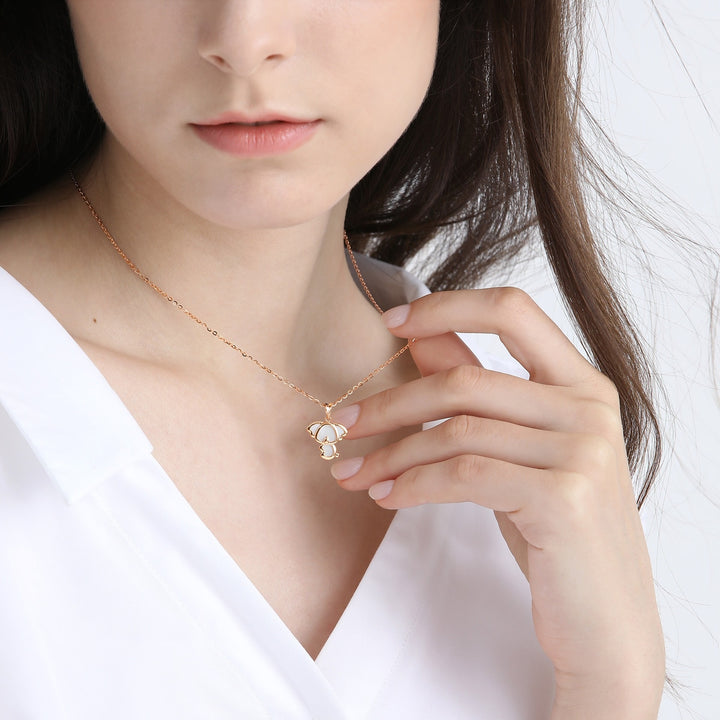 This 18K Rose Gold Pendant by Chow Sang Sang takes design inspiration from the charming koala, radiating a natural iridescence. The handcrafted mother of pearl outlines the koala’s contours, amplifying its adaptive and meticulous features, making it a delightful addition to any jewelry collection.