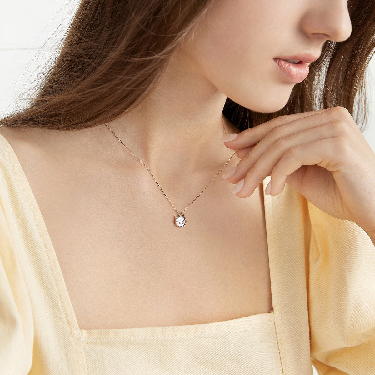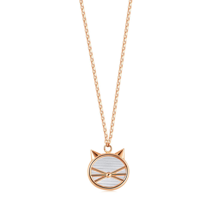 This 18K White & Red Gold Necklace by Chow Sang Sang highlights a playful kitten motif. The necklace outlines the contour of the kitten’s head with a sleek linear design, while its face is adorned with 18K white gold for an innovative and pure style.