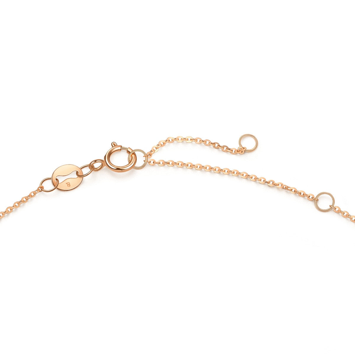 Crafted in 18K Rose Gold, weighing approximately 0.049 tael (~1.834g). The necklace measures 47cm in length.
