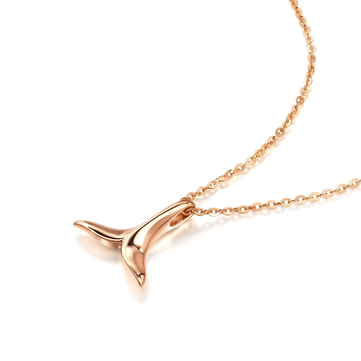 This 18K Rose Gold Necklace by Chow Sang Sang is inspired by the smooth, sleek lines of a dolphin's tail. Perfect for a minimalist and elegant look, this necklace adds subtle sophistication to any outfit.
