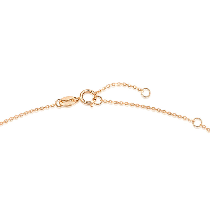 Crafted in 18K Rose Gold with magenta enamel, weighing approximately 0.040 tael (~1.497g). The necklace measures 47cm in length.