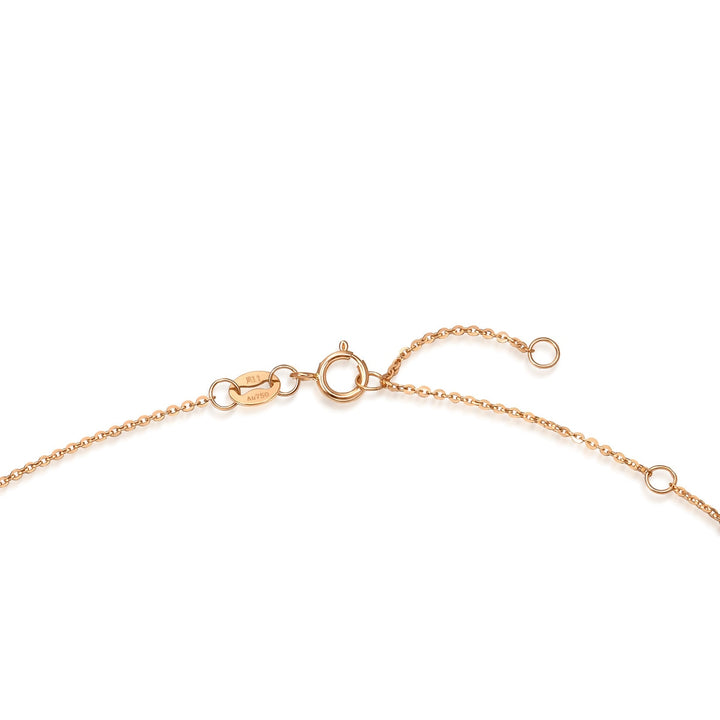 Crafted in 18K Rose Gold, weighing approximately 0.045 tael (~1.684g). The necklace measures 47cm in length.