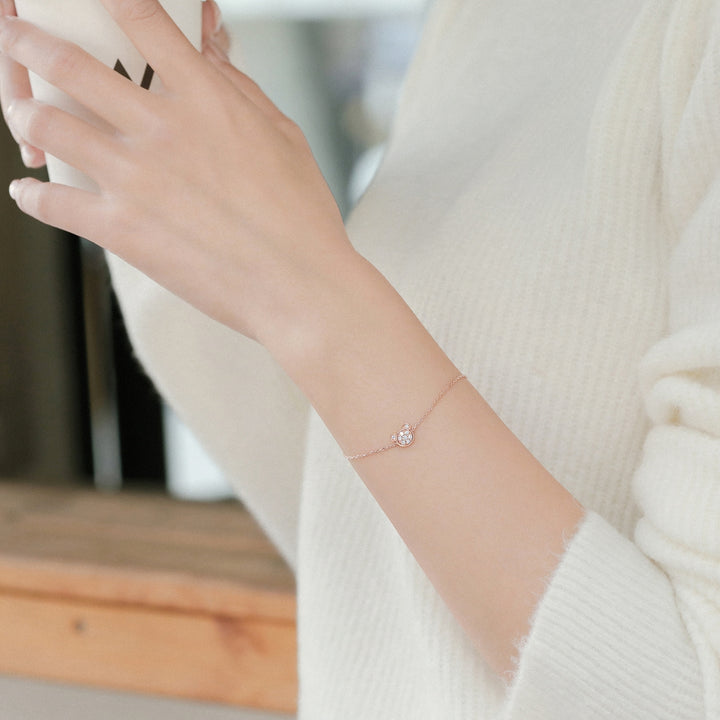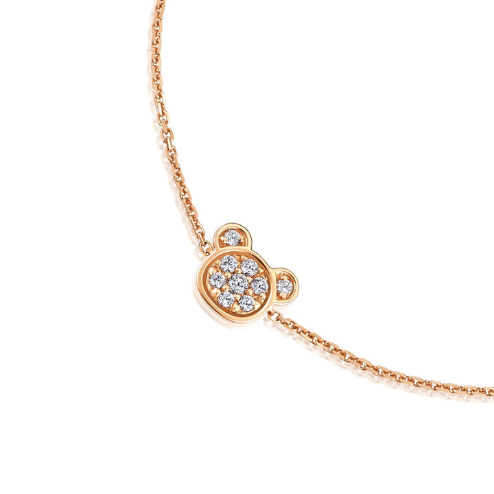 This 18K Rose Gold Diamond Bracelet by Chow Sang Sang features an adorable bear motif, set with fine brilliant diamonds. The charming design makes it a lovely accessory, perfect for adding a touch of sparkle and fun.