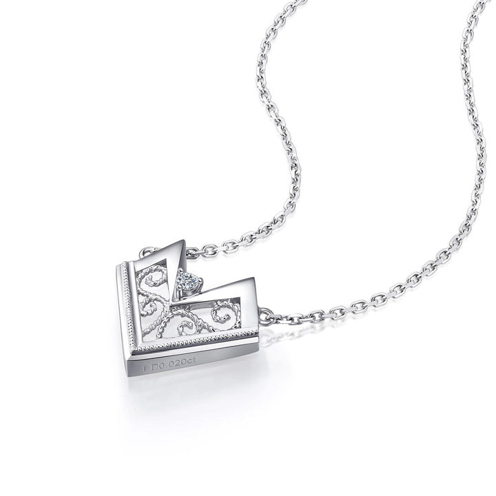 This 950 Platinum Diamond Necklace by Chow Sang Sang showcases a sleek, flat heart-shaped frame surrounding elegantly engraved curves and a central diamond. Modern and fashionable, this piece adds a chic touch to any daily look.
