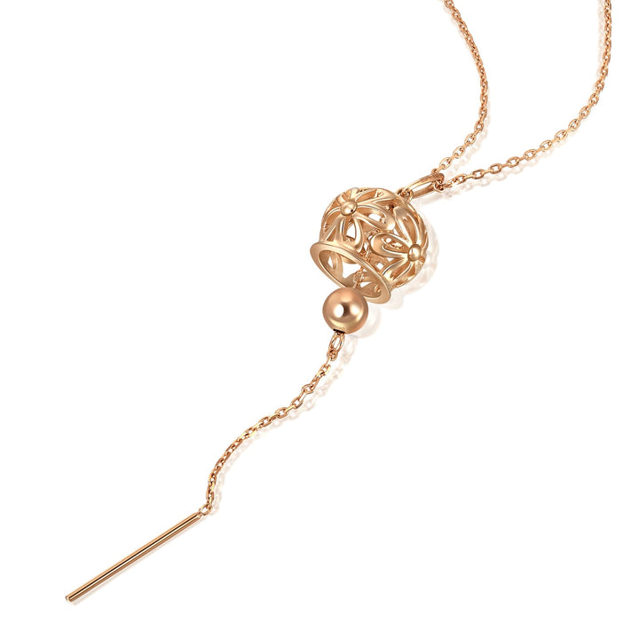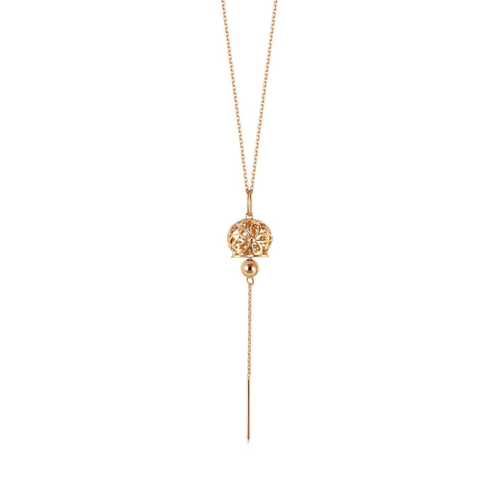 This 'Ryokou' 18K Rose Gold Necklace by Chow Sang Sang showcases a petite hollowed wind chime, symbolizing the serene beauty of Japanese summer. The minimalist design represents Japanese simplicity, making it a perfect accessory for subtle elegance.