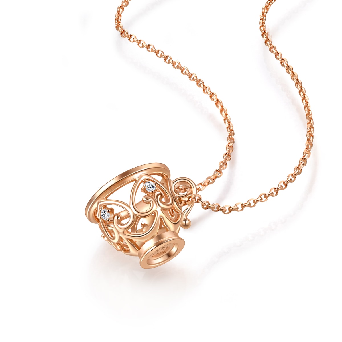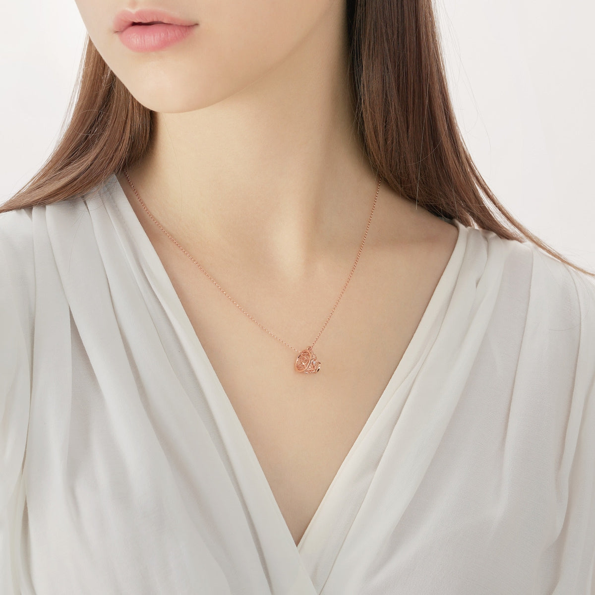 This 18K Rose Gold Diamond Necklace by Chow Sang Sang is a simple yet elegant piece, adorned with a small round diamond. The refined design is ideal for adding a touch of luxury to any daily look.
