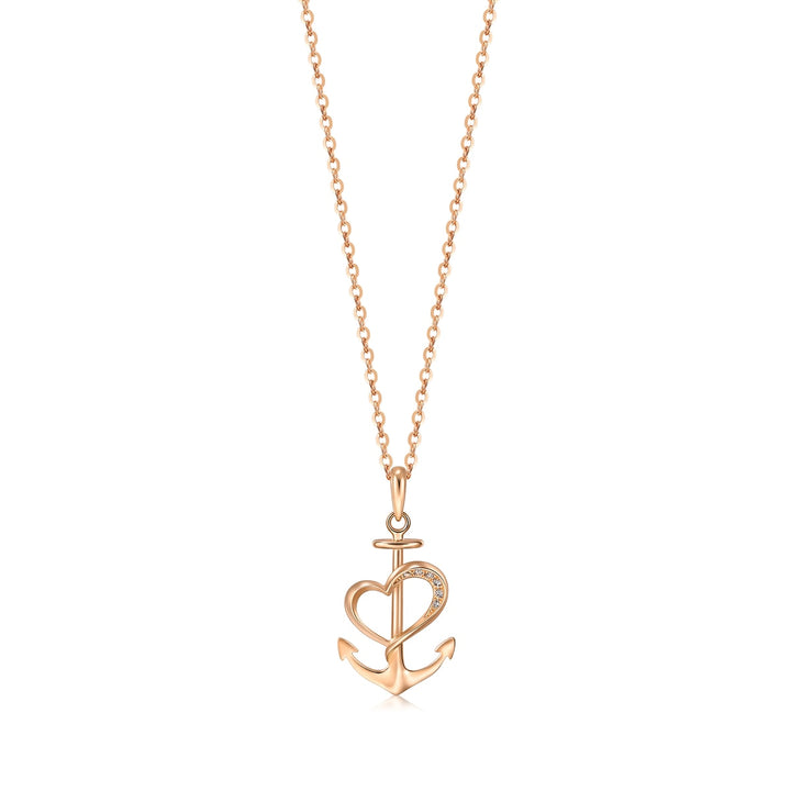 This 18K Rose Gold Diamond Pendant by Chow Sang Sang symbolizes reassurance in love with an irregular heart-shaped frame, embedded with small round diamonds. Elegant and meaningful, this piece adds a romantic touch to any look.