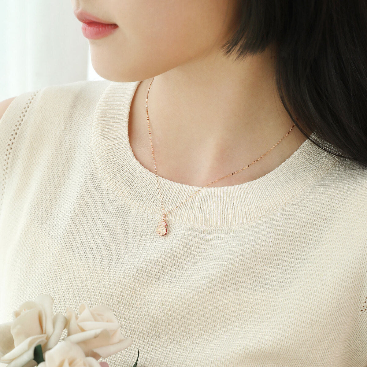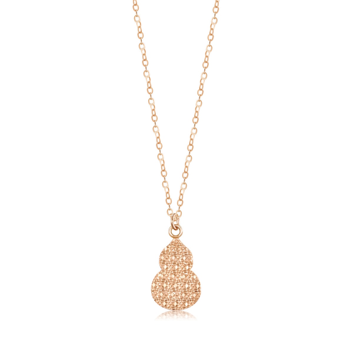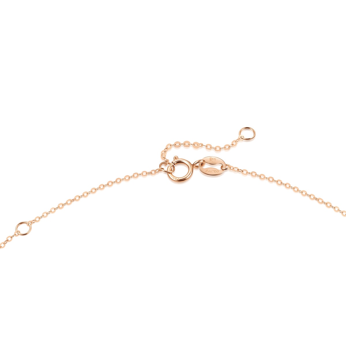 Handcrafted in 18K rose gold. Weighs approximately 0.035 tael (~1.31g). Necklace measures 47 cm.