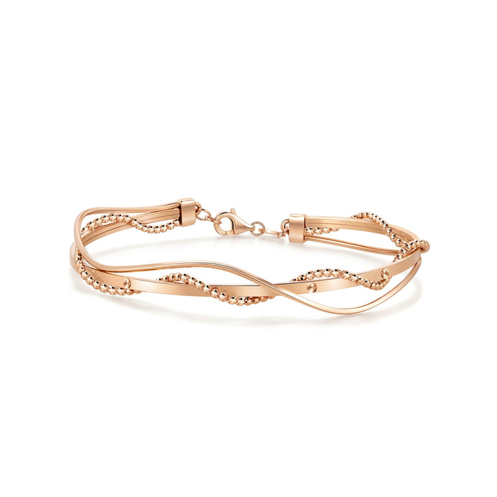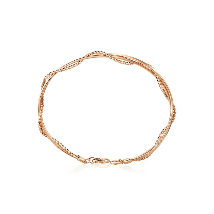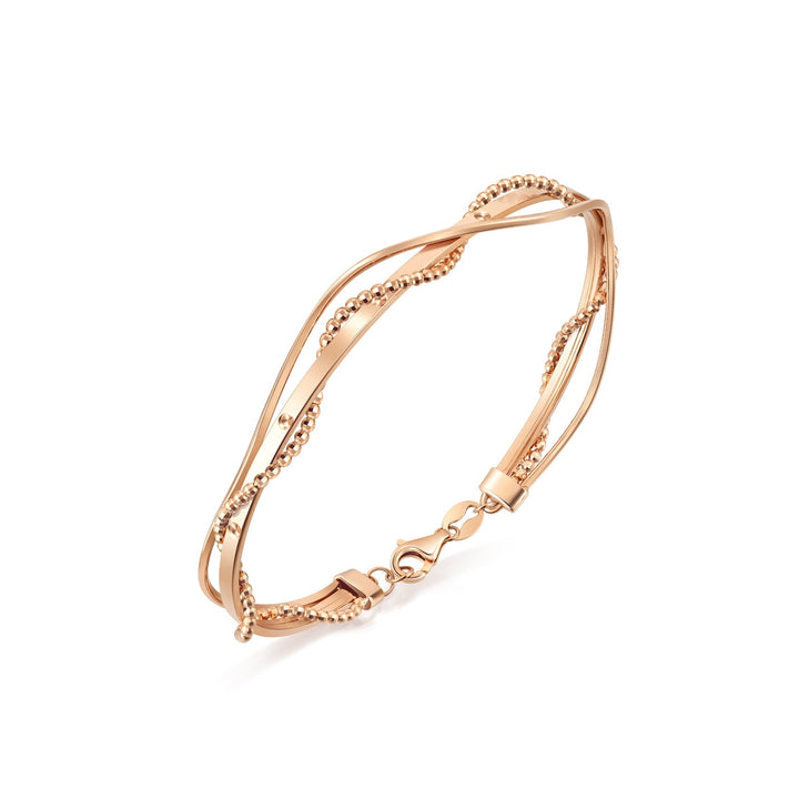 This 18K Rose Gold Bangle by Chow Sang Sang is both stylish and elegant. Formed by three linear bands, one of which is embellished with engraved beads, this bangle offers a sophisticated touch that complements any outfit.