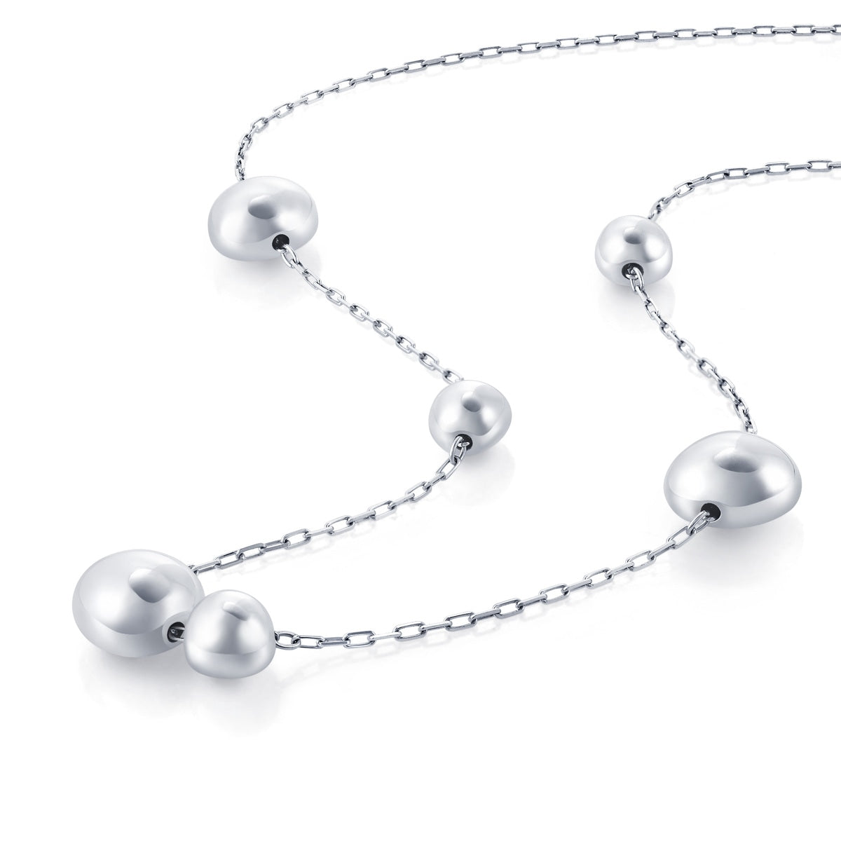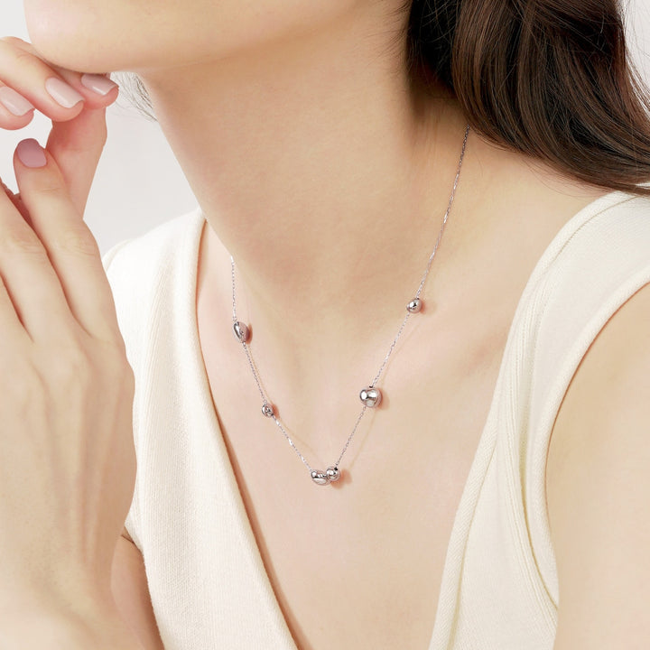 This 950 Platinum Necklace by Chow Sang Sang showcases the elegance of electroforming, featuring a stunning combination of sleek beads and intricate platinum design. The necklace swings gracefully with the wearer’s movement, making it a timeless piece that complements any outfit.