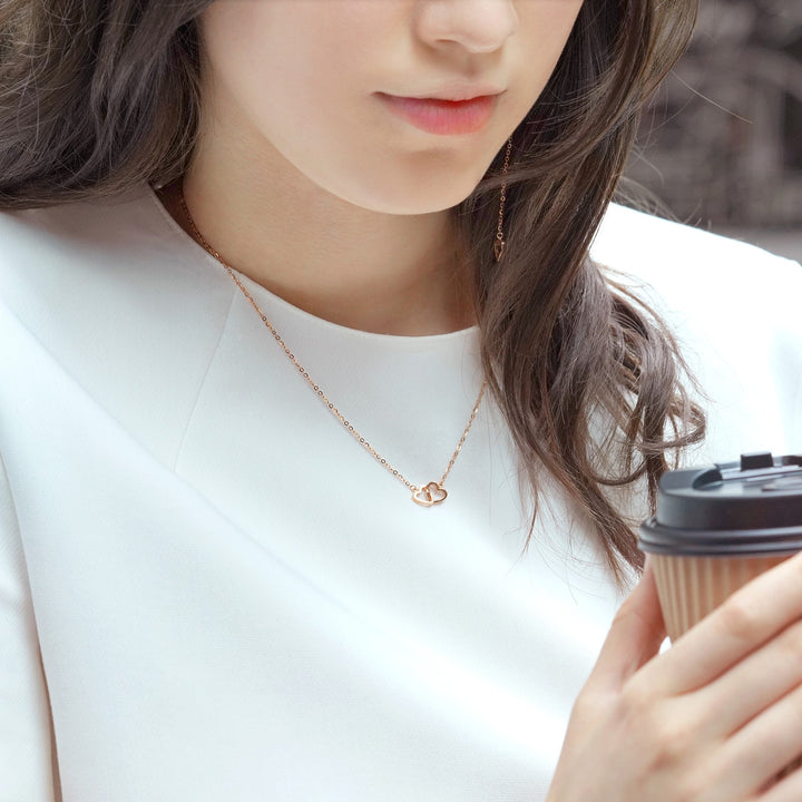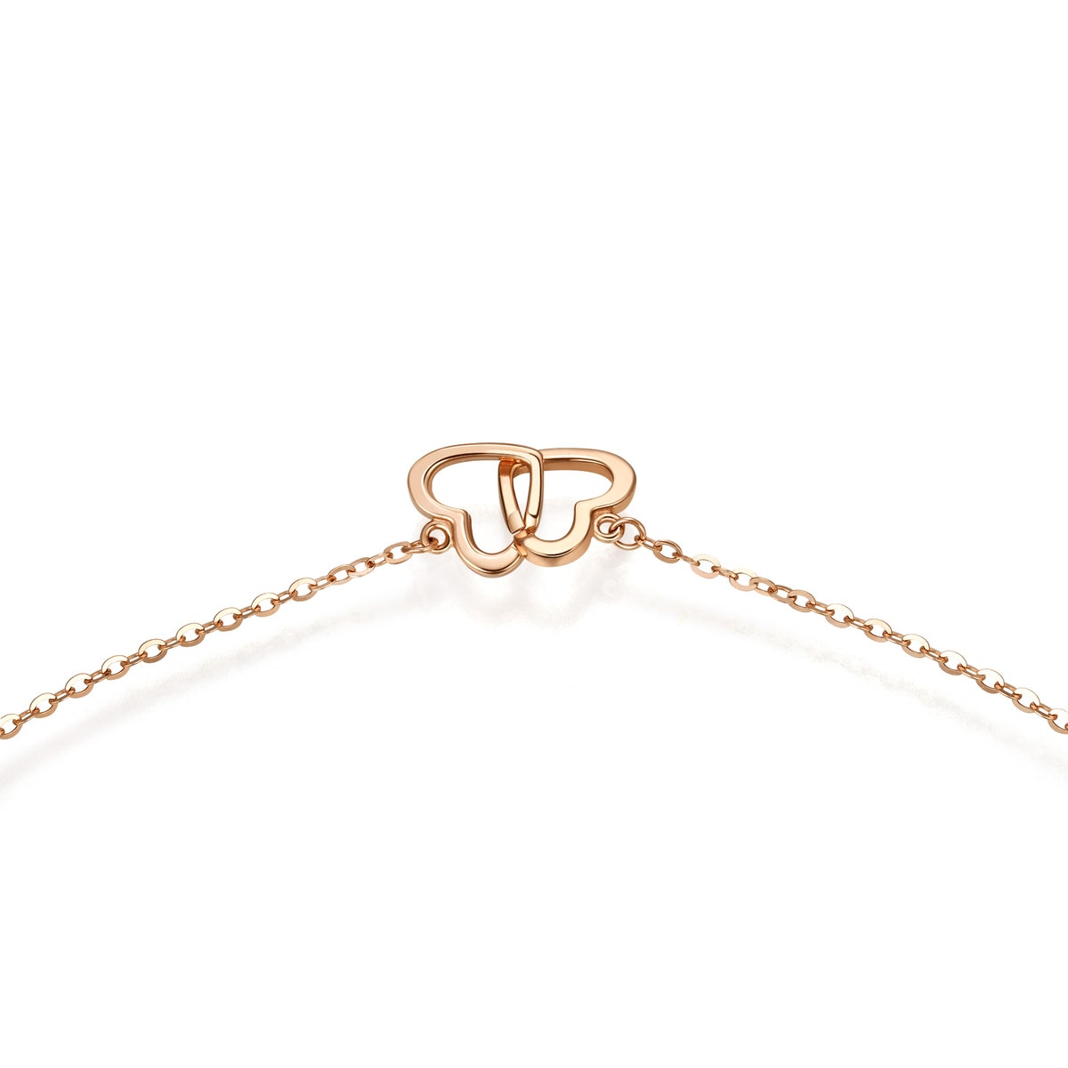 This 18K Rose Gold Necklace by Chow Sang Sang signifies the bond of love with its hollowed heart shapes. The simple yet romantic design makes it a perfect accessory for everyday wear, adding a touch of elegance to any outfit.