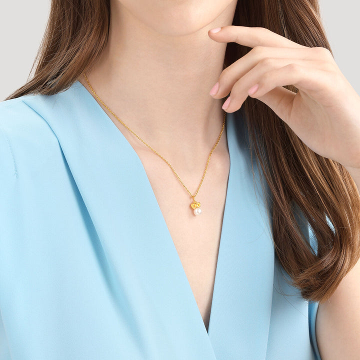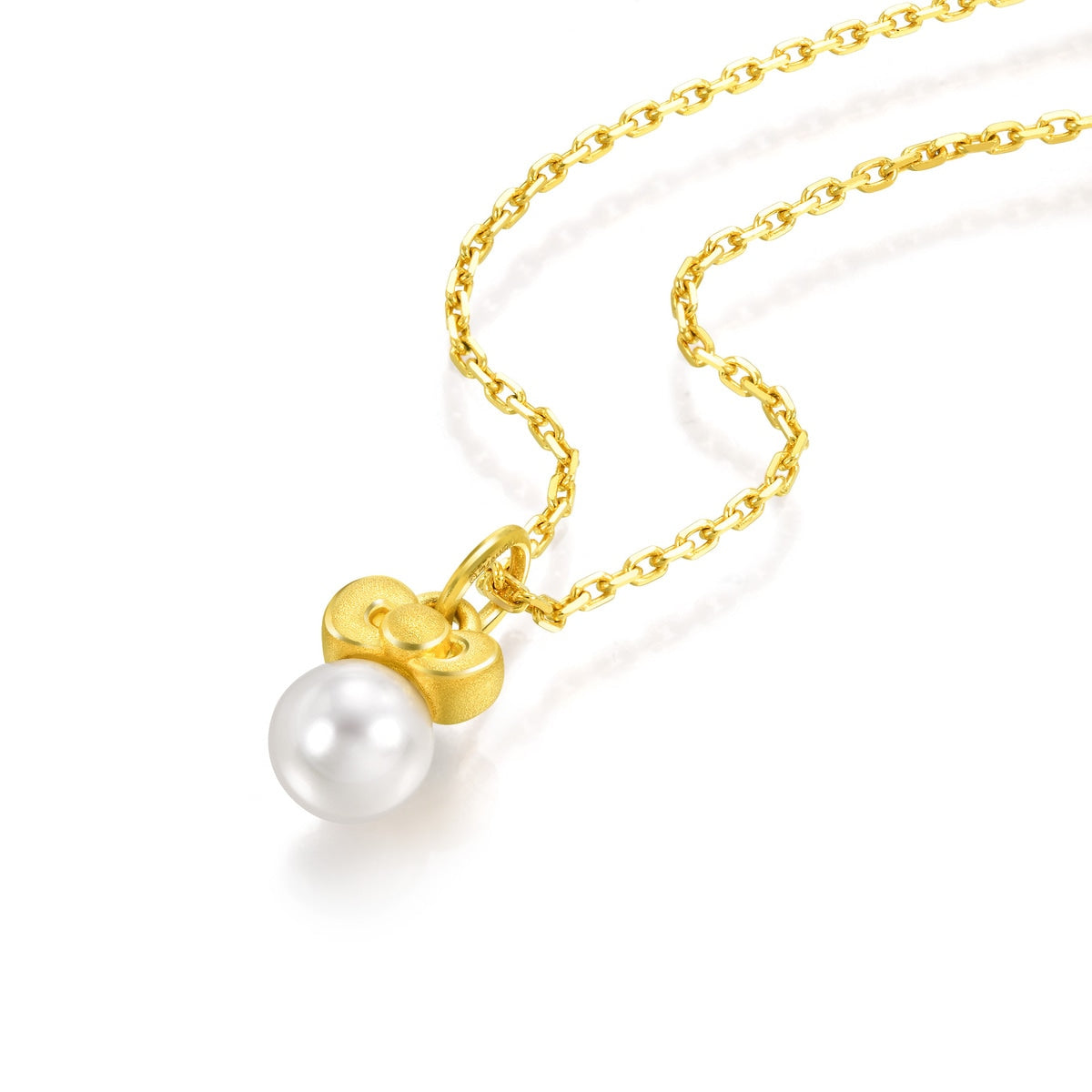 This 'Hello Kitty' 999 Gold Pendant by Chow Sang Sang echoes the design of the bowtie, crafted in exquisite gold and enhanced with a refined pearl. This lovely pendant adds a touch of playful uniqueness to fashion, making it a delightful accessory.