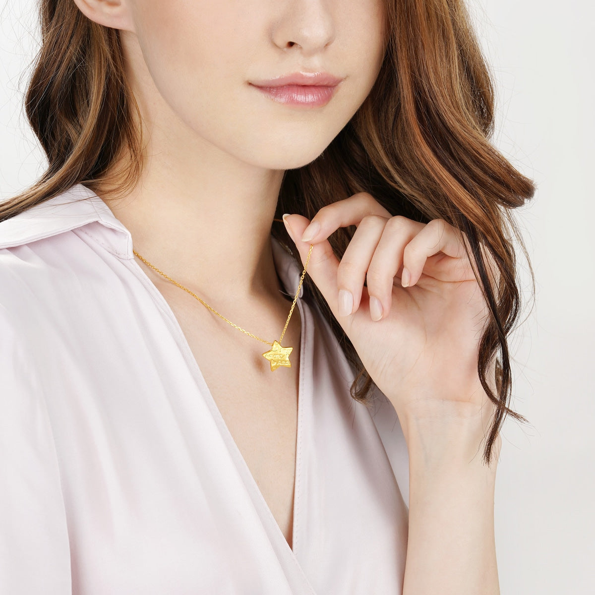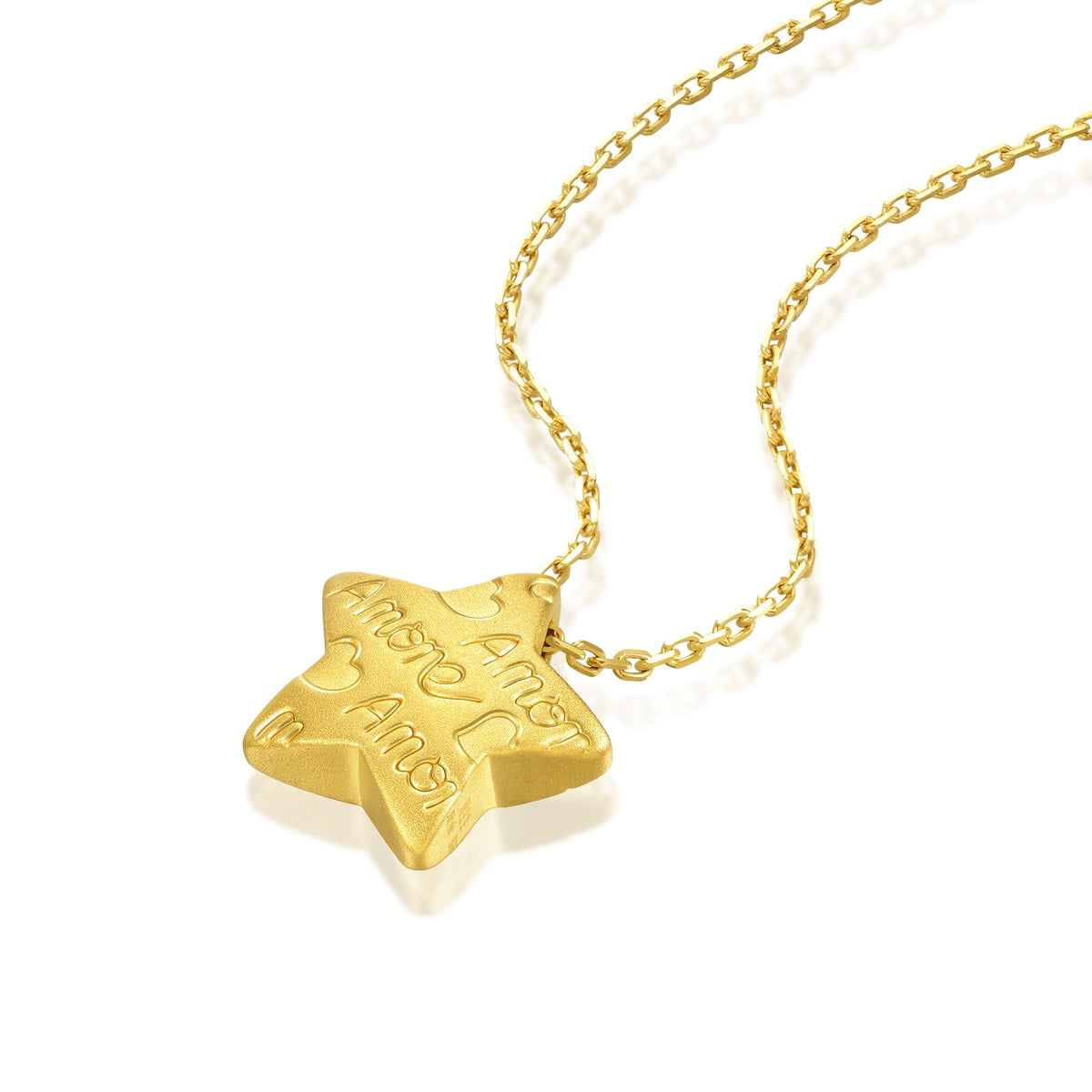 This 999 Gold Pendant by Chow Sang Sang features a delicate star design, also engraved with “Amore.” Symbolizing beauty and hope, this pendant represents the romantic moments shared between lovers, making it a cherished piece for any jewelry collection.