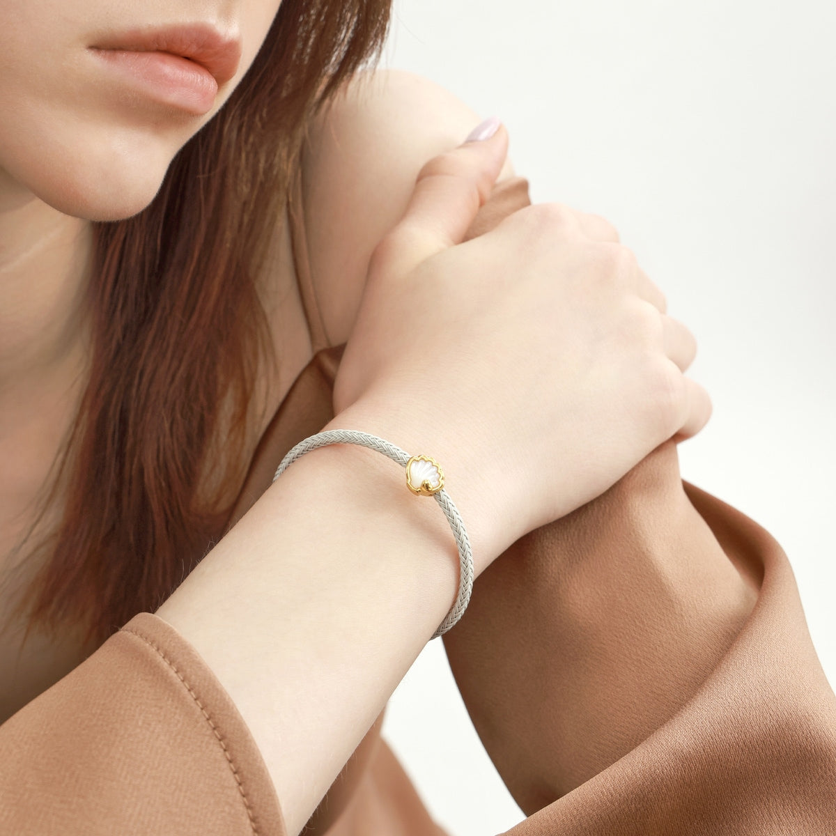 This 'Wonderland' 999 Gold Mother of Pearl Charm by Chow Sang Sang showcases a beautiful design that adds elegance to any collection.