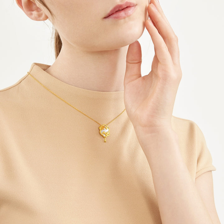 Handcrafted in 999.9 gold with mother of pearl. Weighs approximately 0.069 tael (~2.583g).