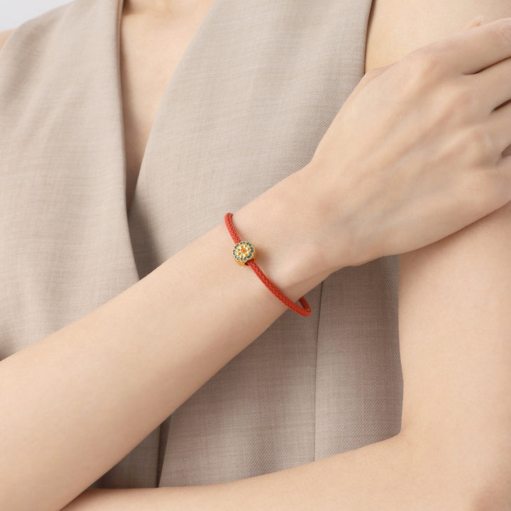 This 'Blessings' 999 Gold Chrysanthemum Auspicious Charm by Chow Sang Sang is enhanced with enamel coating, featuring a delicate chrysanthemum design. Known as a symbol of noble character in Chinese culture, this charm represents longevity and brings auspicious meanings to the wearer.