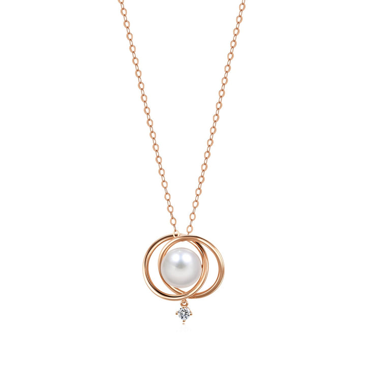 This 18K Rose Gold Akoya Pearl Necklace by Chow Sang Sang features a glowing Japanese Akoya pearl paired with a sparkling diamond, elegantly surrounded by a red gold frame. Graceful and sophisticated, it elevates any daily outfit with its refined charm.