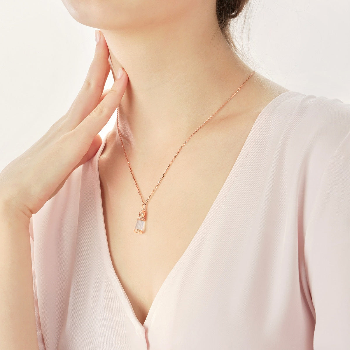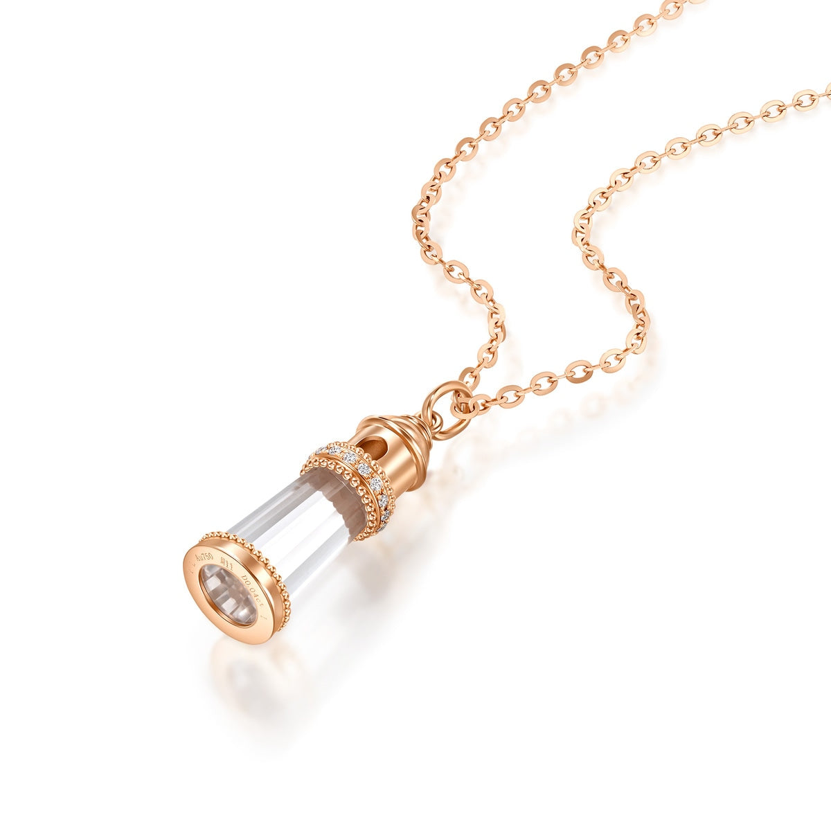 This '18K Rose Gold Diamond Beacon Pendant' by Chow Sang Sang symbolizes unshakeable love and protection. Inspired by the translucent beacon design, this pendant is adorned with diamonds for graceful elegance. The crystal reflects shimmering light, guiding you toward a bright future.