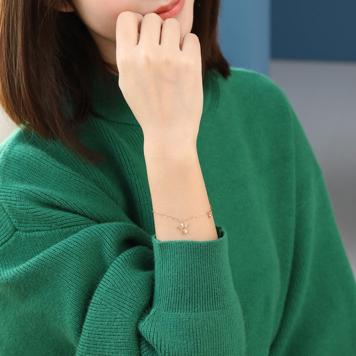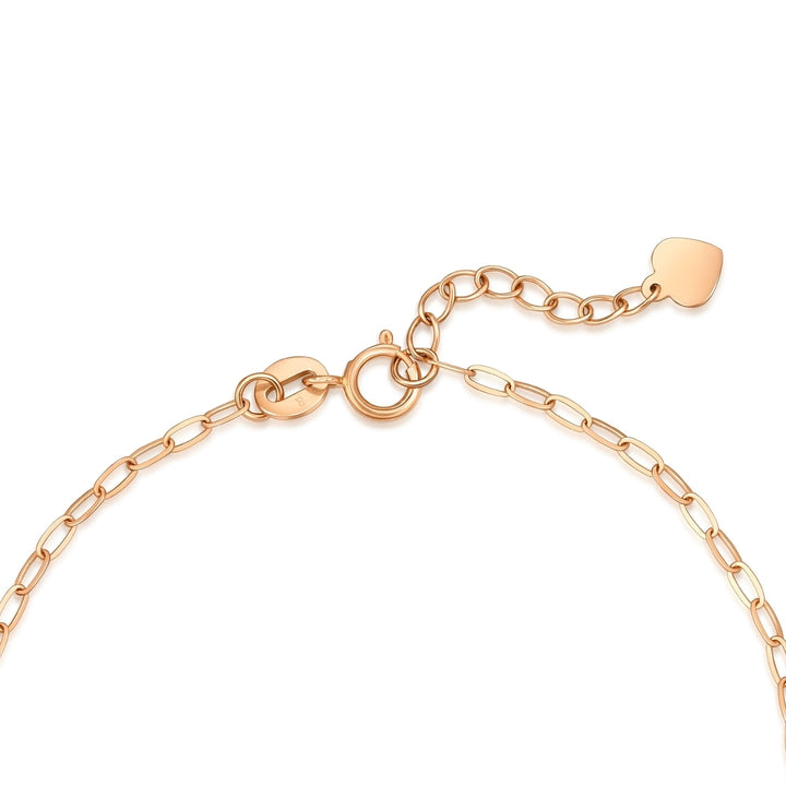 Handcrafted in 18K rose gold. Weighs approximately 0.048 tael (~1.797g). Bracelet measures 19 cm.