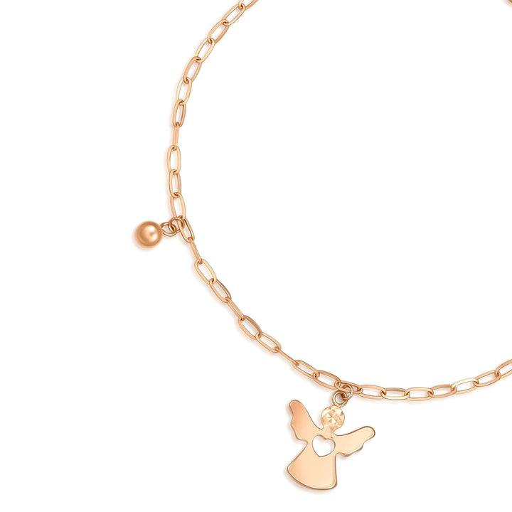 This 18K Rose Gold Bracelet by Chow Sang Sang features a cute angel design alongside a small bead, wishing good health and happiness to the wearer. This charming bracelet adds a delightful touch to any outfit.