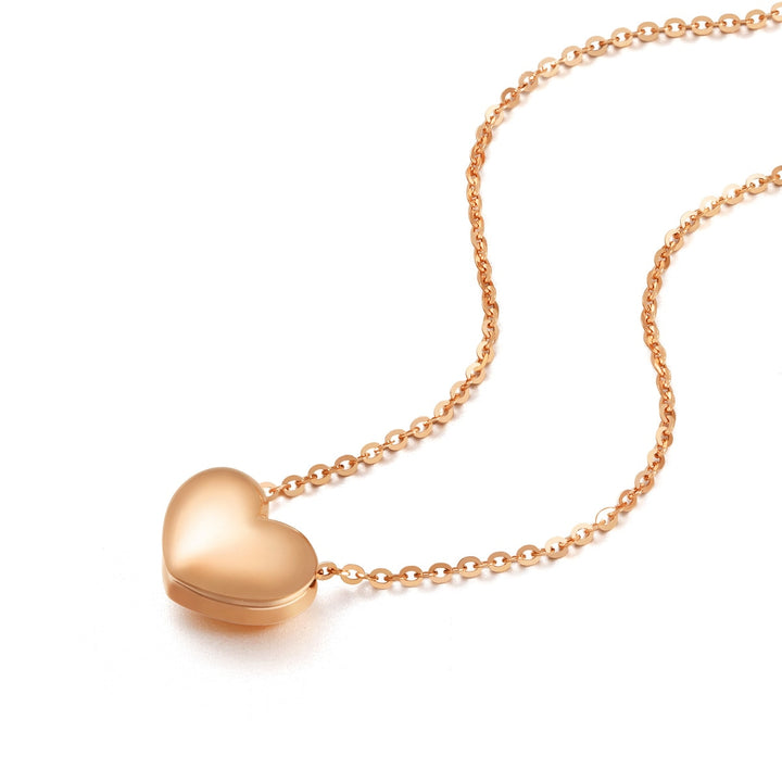 This 18K Rose Gold Necklace by Chow Sang Sang is a visual representation of minimalist beauty, featuring a rounded and elegant heart shape that never goes out of style. This classic design makes it a timeless addition to any jewelry collection.