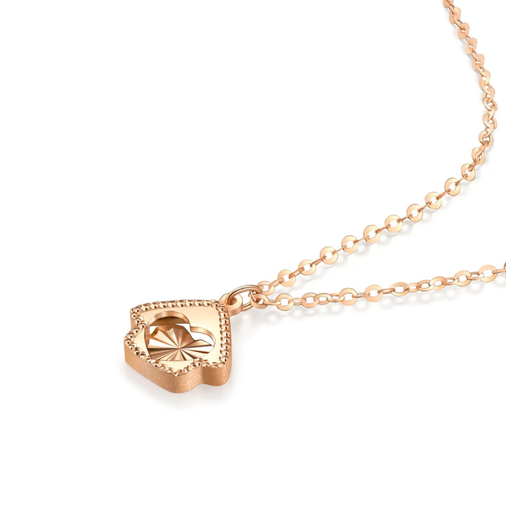 This 18K Rose Gold Necklace by Chow Sang Sang features a house of love design, embellished with a centered engraving that stands out with beaded edges. Cute and enchanting, this piece demonstrates a stark contrast in texture, adding character to any outfit.