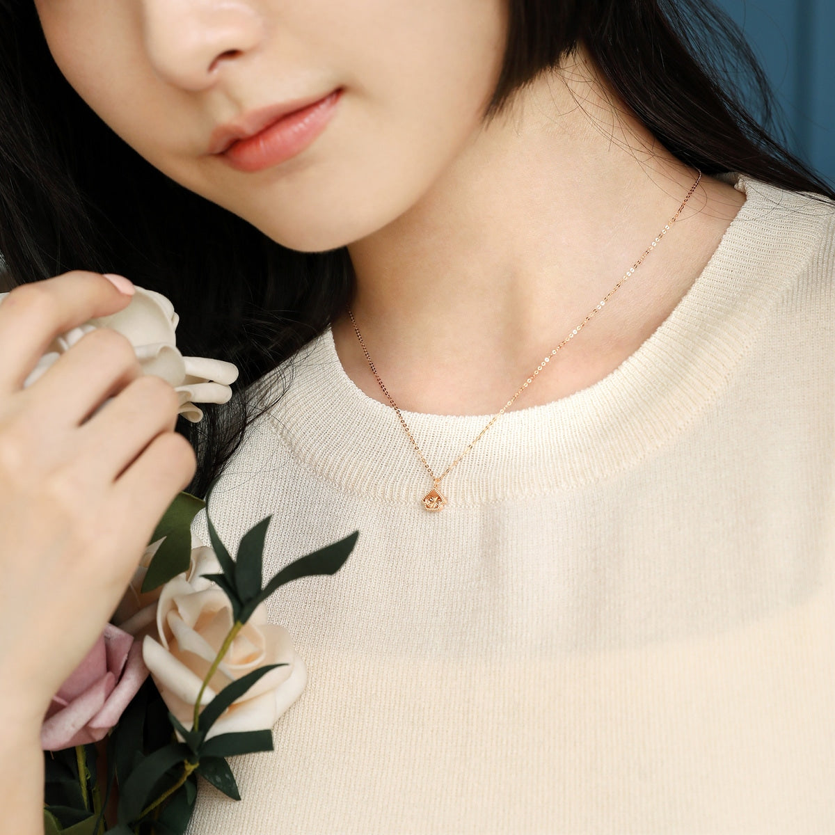Handcrafted in 18K rose gold. Weighs approximately 0.030 tael (~1.123g). Necklace measures 47 cm.