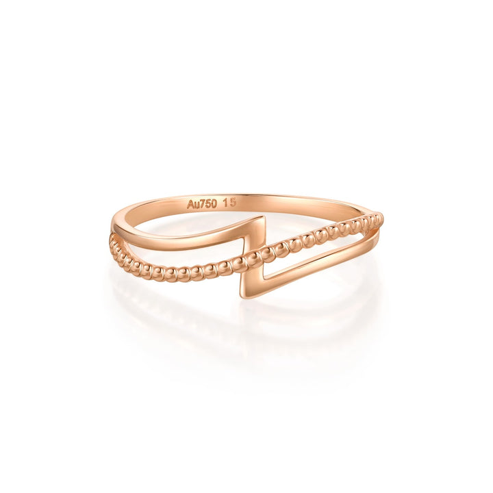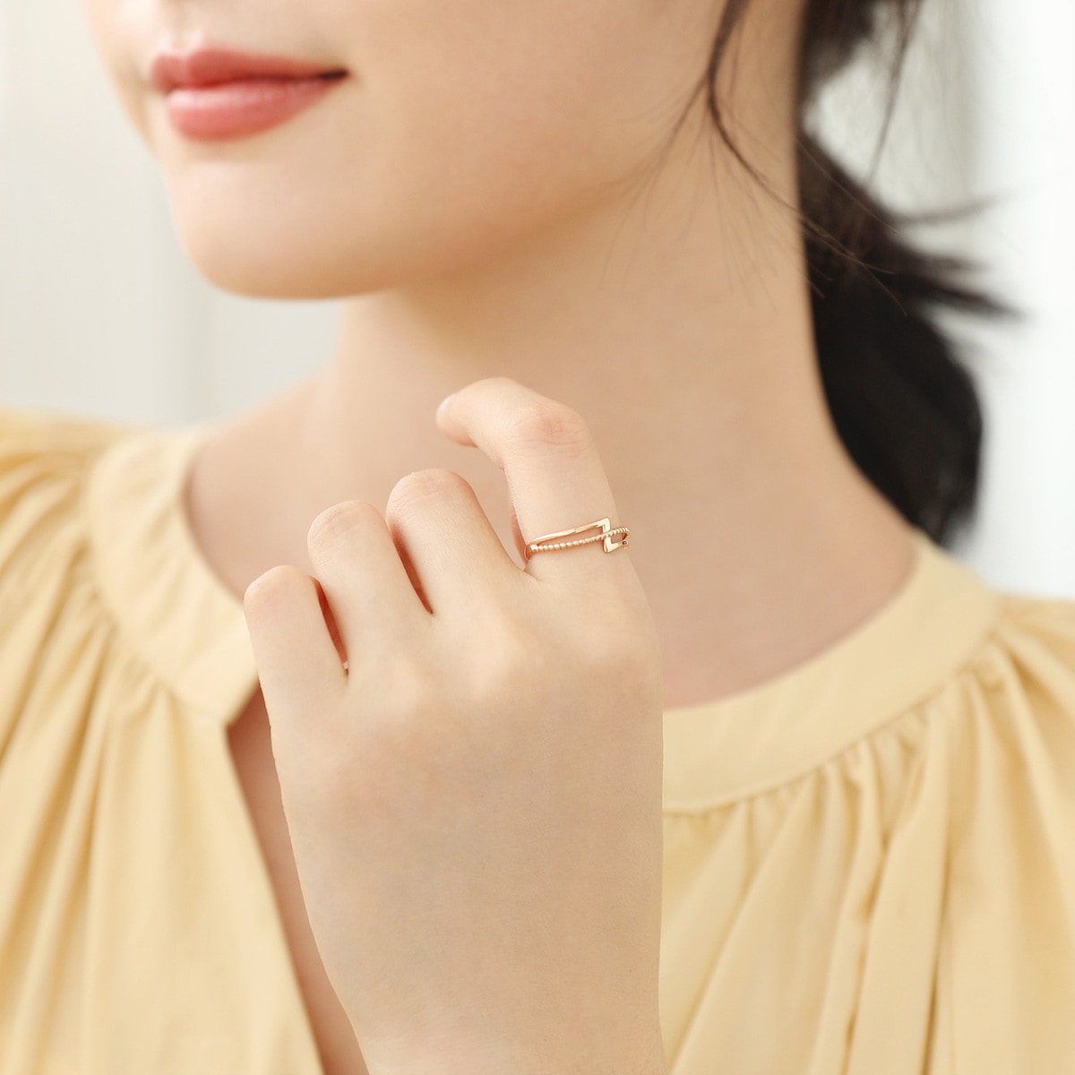 This 18K Rose Gold Ring by Chow Sang Sang embraces contemporary aesthetics, featuring entwining geometric lines and weaving rope designs. Its timeless style ensures that it never goes out of fashion, making it a staple in any jewelry collection.