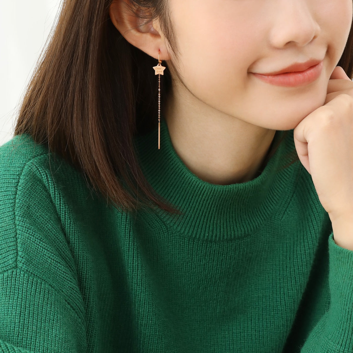 This 18K Rose Gold Star Single Earring by Chow Sang Sang offers versatility in style. With a detachable star disc and threads, it can be worn solo for minimalist beauty or paired together for a stunning statement stack, allowing for greater flexibility in accessorizing.