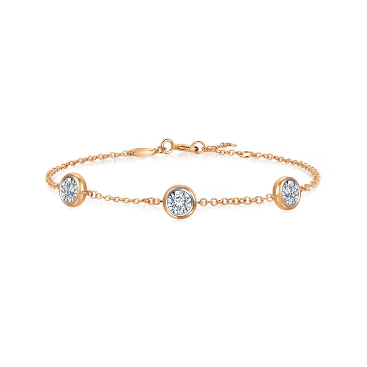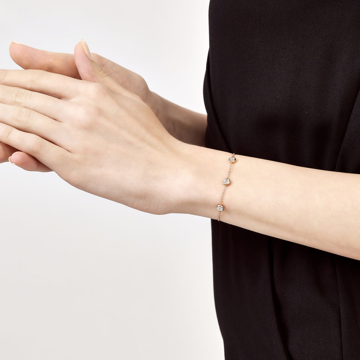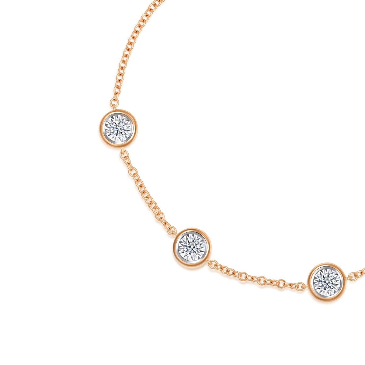 Crafted from 18K white and rose gold with 0.14ct diamond. Color Grade: G-H. Approx. 0.053 tael (~1.984g). Round Brilliant. 17cm length. SI1-SI2.