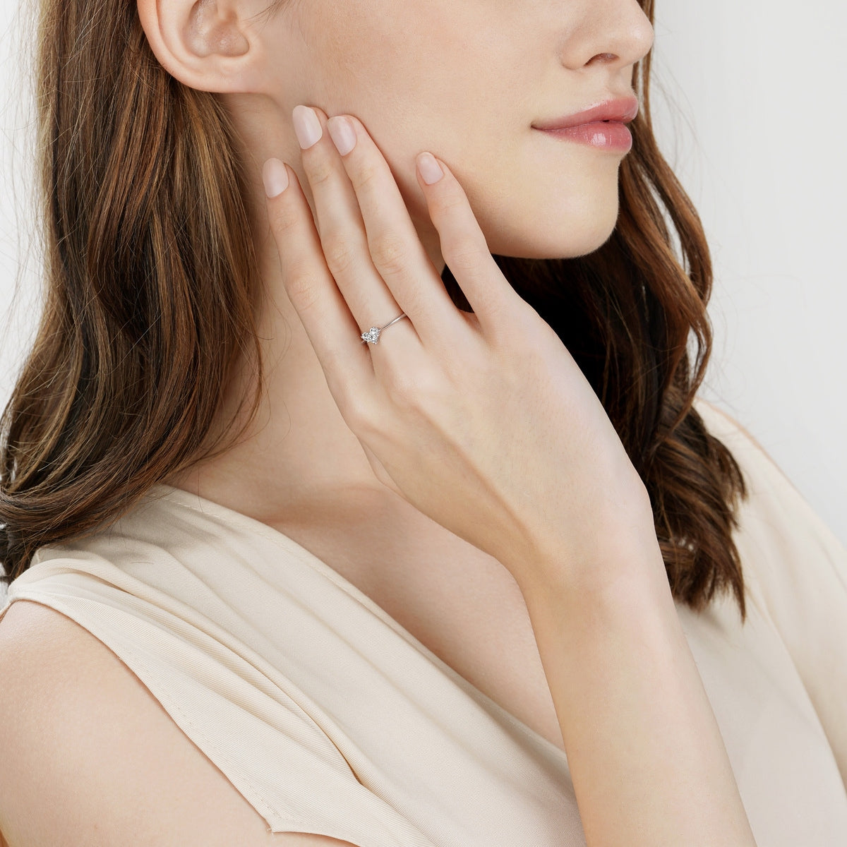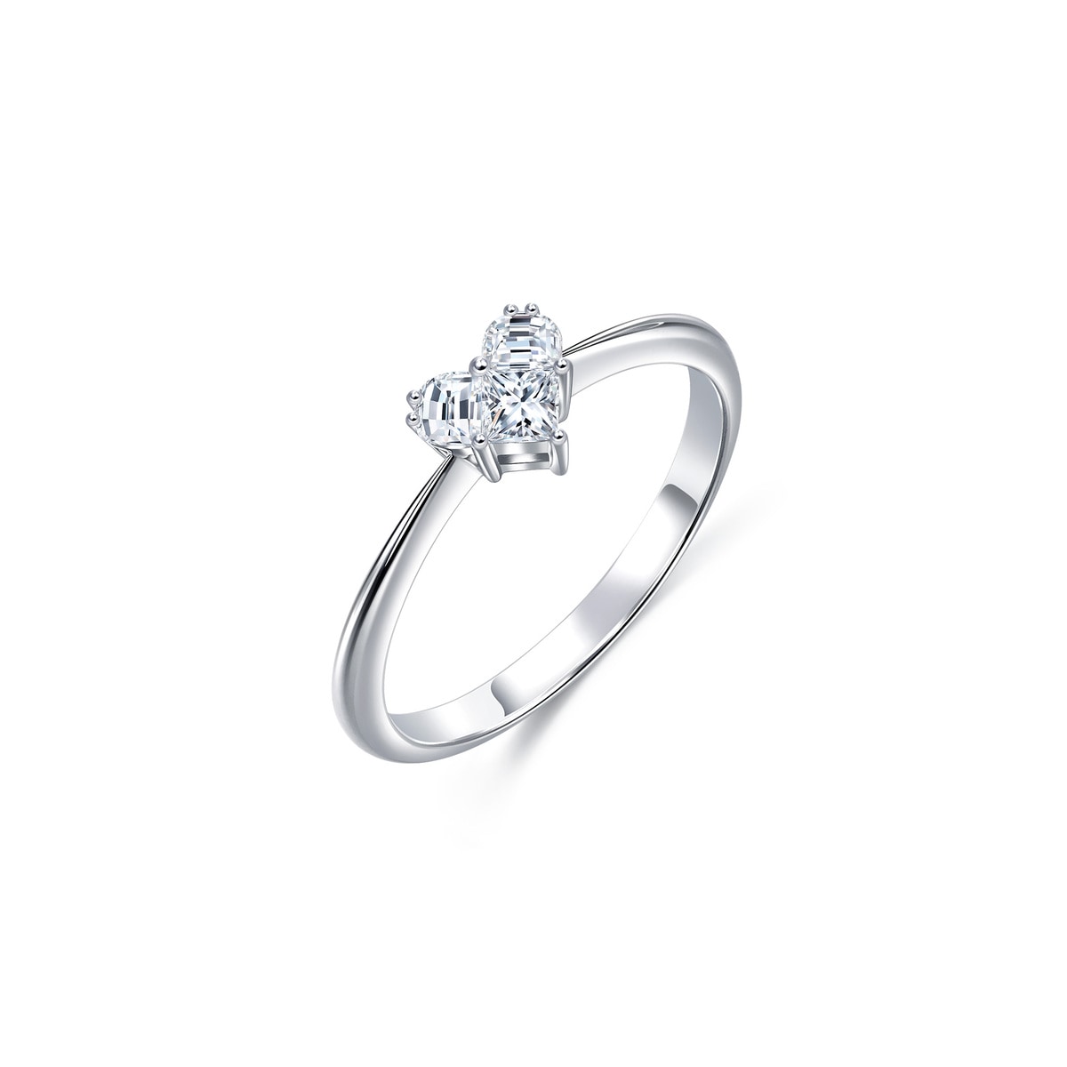 These 18K White Gold Diamond Rings by Chow Sang Sang showcase the exclusive Lady Heart design, featuring two half-moon diamonds and one princess-cut diamond. Reflecting the diverse nature of femininity, this ring can be styled in various ways to enhance any outfit.