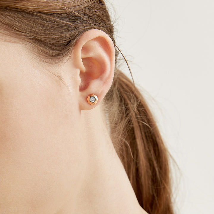 This 'Fantasy' 18K White & Red Gold Diamond Single Earring by Chow Sang Sang is an exquisite piece that combines engraving and embedding techniques, linking the multi-sided contour and the main diamond for enhanced brilliance through its 3D design. This minimalistic style meets extraordinary craftsmanship, making it a perfect complement to stylish everyday wear.
